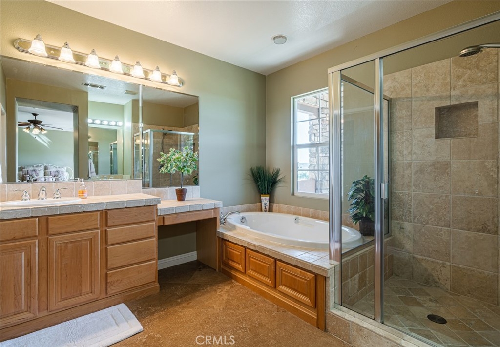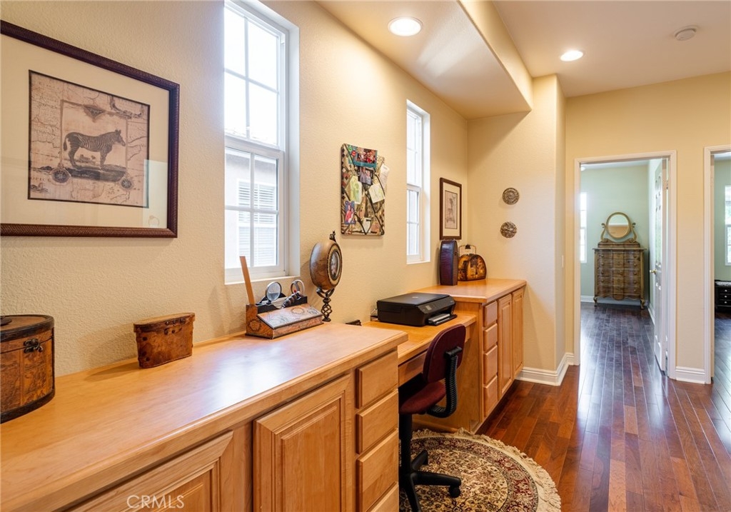 Welcome to Canterbury, an enclave of Vista Del Verde. Set on the 4th fairway of Black Gold golf course, this home has Incredible Panoramic Views of Catalina and City lights. While entering through the courtyard and into the home the first thing you will notice is the expansive lay out. This home boast 2346 square feet and is a three bedroom, two and a half bath. There are both hardwood and travertine floors throughout. The beautiful kitchen has granite counters, an eat in area and stainless steel JennAir appliances. In the family room is a warm, inviting fireplace. Upstairs you will find a computer, office area, with custom built ins, and custom bookshelves for your books. All of the bedrooms are on the same level, along with the laundry room. The Master Suite has a huge walk in closet, an En Suite master bath with a large shower, a separate soaking tub and two individual vanity areas, both with their own sinks. Step out onto your veranda to relax and overlook your beautiful backyard that has incredible VIEWS!