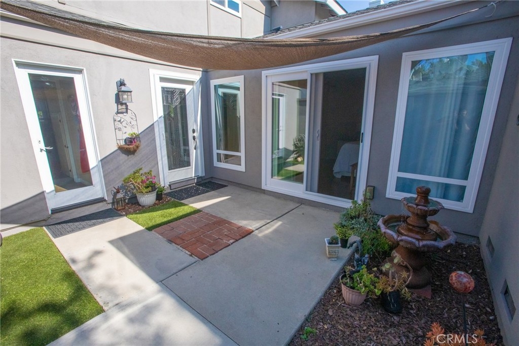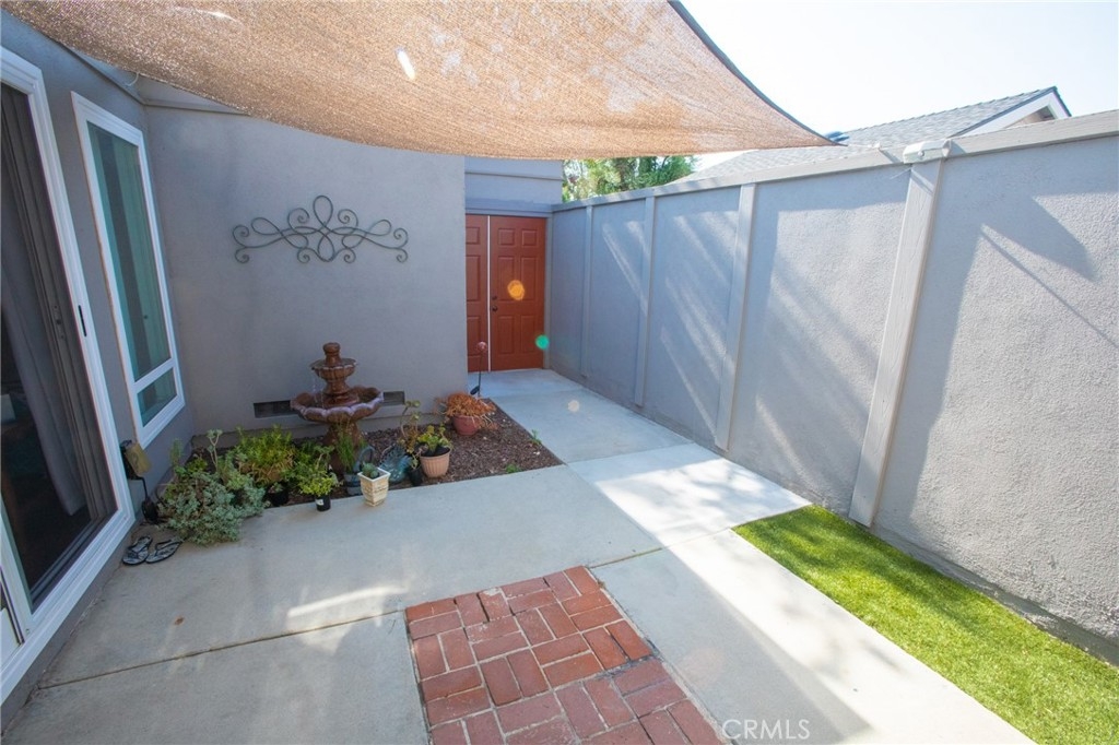 Beautiful end unit townhome in the highly sought after neighborhood of Fairgreen. Drive into your 2 car garage that leads to your own private gated courtyard to enter your home. This home boasts three bedrooms and two baths. The master bedroom and bathroom are downstairs with the option to open up the new sliding glass door to the front private courtyard. This home has been tastefully upgraded with all new windows and doors, new kitchen cabinets and countertops, new AC & heater unit, crown molding in living room and more. The new sliding glass door in the kitchen area leads to a private back patio with newer vinyl fencing. The exterior has been recently painted and a new roof has been installed. Community features includes 3 swimming pools, tennis court, basketball court and playground.