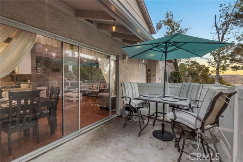 Ideally located on the highest street in the Fairmont Hill complex, with great views, and centrally located to everything * Largest floorplan, end unit, this 3 bedroom, 2.5 baths, 2 level condo is a rare find * Beautiful views from patio, greenbelt area * Beautiful and spacious living room, dining area, kitchen all have wood laminate flooring, recessed lighting, two tone paint with grey wall color and white ceilings. Kitchen with updated appliances including gas range, built in microwave, dishwasher * Laundry area has been moved to garage and laundry room makes a great office space. Large closet under the stairs for extra storage, powder room also on main level. Dining area is next to glass sliding door which leads to back patio. Wood floors up the stairs to all 3 bedrooms. Master suite is generously sized with carpet and master bath has shower and brand new tiled floor. Two more bedrooms upstairs share the full hall bath with tub/shower combo. Two car garage with direct interior access. HVAC, recessed lighting, appliances and master bath tile were all recently added or replaced. Private patio for this end unit has vinyl fencing, is large enough for outdoor entertaining and grilling under the stars, and enjoys beautiful views and TOTAL privacy . This street is single loaded so there are only condos on the view side and ample guest and resident parking on north side of the street. Schools are Glenknoll Elementary, Bernardo Yorba Middle and Esperanza High. Put this on your list for this weekend!!