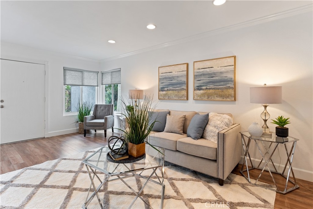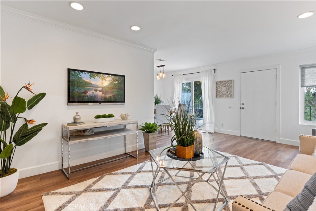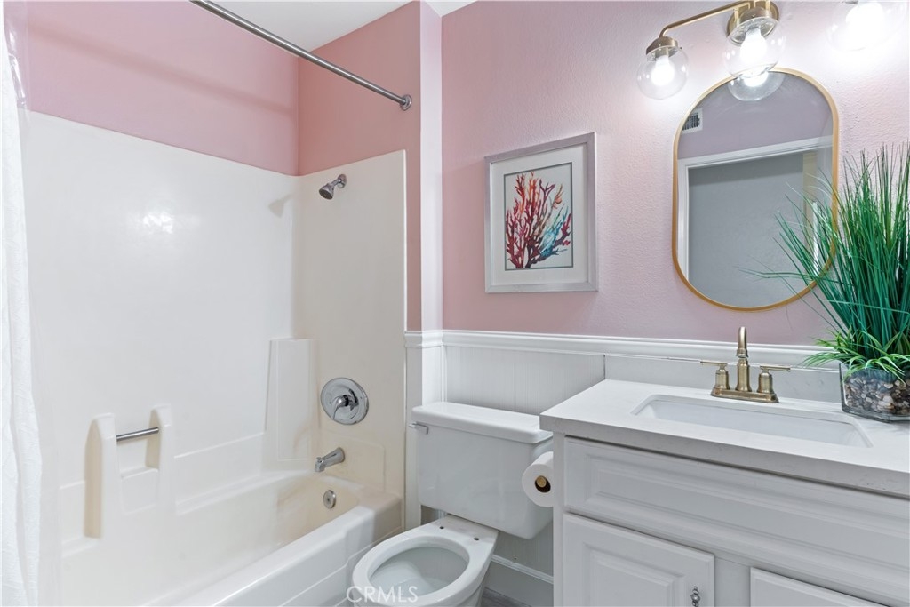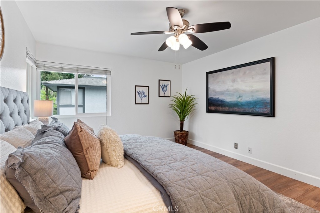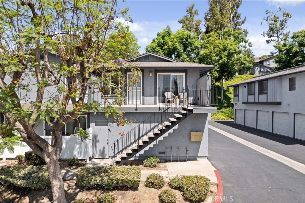 At the end of a cul-de-sac near the top of Fairmont Hill sits 19969 Apple Creek Lane #12, a lovely carriage unit with no one above or below! The home features 3 bedrooms and 2 bathrooms, and a dedicated laundry room all on one convenient level. The open concept main living space faces the front of the home and the oversized balcony which boasts sweeping vistas of the hills, treeline, and city lights. The light and bright home has upgrades throughout that include LVP flooring, fixtures in the kitchen and bathrooms, newer windows, Quartz counters, wainscotting in the bathrooms and stainless steel appliances. The home only shares one wall, with no bedrooms having any common walls. The spacious Primary suite has its own bathroom and a generously sized walk-in closet. A one-car garage and an assigned parking space are just at the bottom of the stairs, and the community has ample guest parking. Residents of Fairmont Hill enjoy access to two pools, spas, walking trails and a playground - and the HOA includes trash and Spectrum internet / cable! All this is located in the highly desirable city of Yorba Linda, close to shopping and dining in both Yorba Linda and Anaheim Hills, the award winning Placentia-Yorba Linda Unified School District, convenient to freeways and Yorba Regional Park. Come see this beautiful home today before it's gone! **FHA and VA approved HOA**
