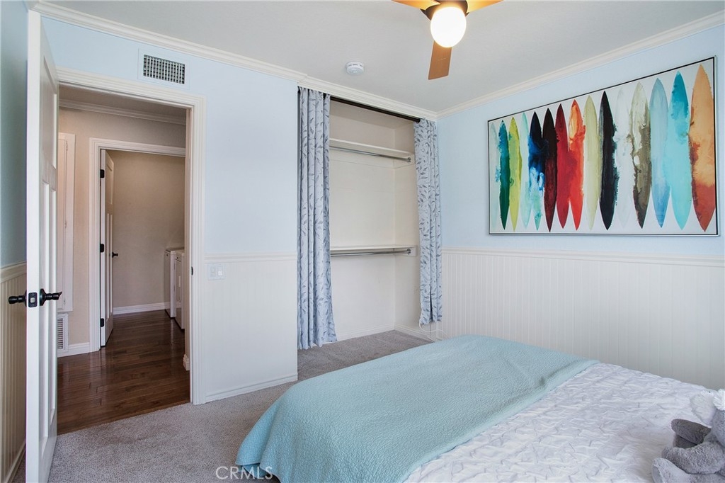 Welcome home to this EXCEPTIONALLY upgraded Fairmont Hill condo residence with a highly coveted 2-CAR GARAGE! This upstairs unit enjoys an extremely private location facing the edge of the community and mature landscaping. Arrive to a large west facing deck that is the perfect place for a relaxing afternoon and a California sunset. The interior boasts dual paned windows, dark stained engineered wood flooring throughout living areas and hallway, beautiful crown molding and recessed lighting. The kitchen has been completely remodeled with solid surface counters, dark stained cabinetry with soft-close hinges, and stainless-steel appliances. The remodeled hall bathroom offers new fixtures and vanity. A convenient inside laundry room offers extra cabinetry and a newer water heater & HVAC. At the end of the hall is a spacious master suite with remodeled en-suite bathroom and a walk-in closet. The two-car garage boasts epoxy flooring, water softener, custom cabinetry and is packed with storage! Enjoy all of the great community amenities of Fairmont Hill HOA with pool, spa, playground and included cable tv and internet. Nearby you will find plenty of shopping, great restaurants and award-winning schools. Don’t miss this one!