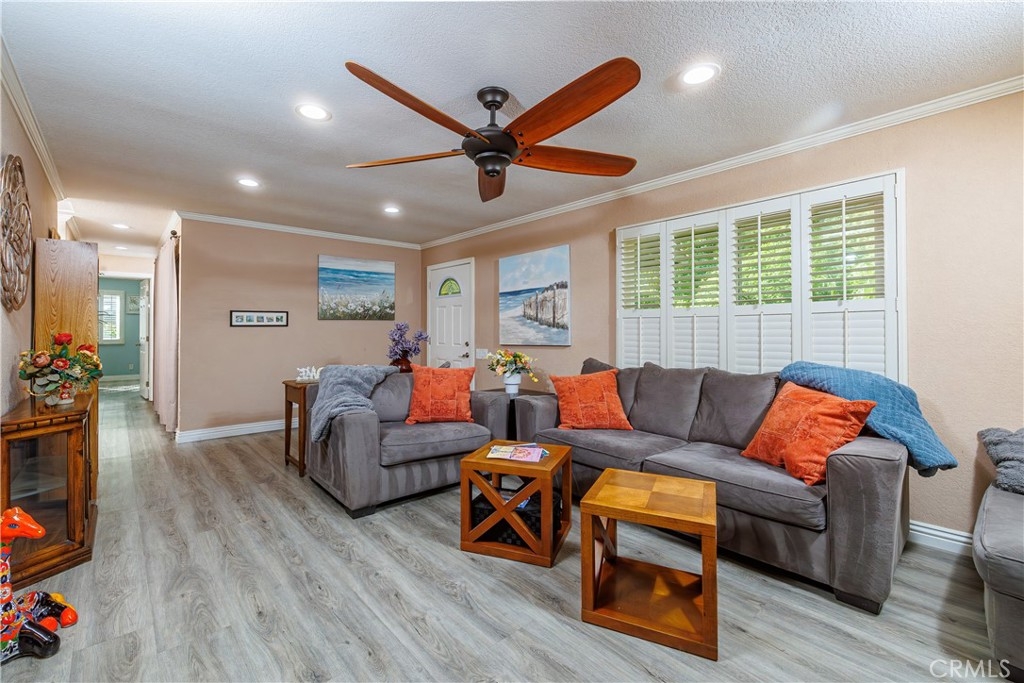 Welcome home to this exquisite single-story end unit situated in the highly sought-after community of Fairmont Hills in Yorba Linda. Nestled in a serene and private area, the location offers both ease of access and proximity to ample street parking. Experience an open floor plan designed for today's lifestyle, featuring an expansive living area that seamlessly connects to the kitchen and patio—perfect for both everyday living and entertaining. The kitchen is wonderfully upgraded boasting abundant cabinetry, including elegant glass cupboards and shelving. Granite countertops, stainless steel appliances and sink with a designer faucet, and sophisticated tile flooring complete the eating area. The primary bedroom is generous in size, offering a wall-to-wall mirrored closet and a ceiling fan for added comfort. The fully renovated bathroom showcases luxurious tile work, glass tile accents, chic shower doors, and a sleek new vanity. Two additional bedrooms are bright and spacious, one equipped with ceiling fans and sizable mirrored closets for ample storage. The guest bathroom has also been completely updated, featuring a soothing soaking tub with a built-in heater, and elegant linen style tiles enhanced with glass tile highlights. The newer sliding glass door leads to a generous patio space, ideal for entertaining or enjoying a barbecue. Throughout the condo, you'll find luxury vinyl flooring complemented by shutters on all windows, creating a harmonious and finished look. This condo is truly ready for you to call "Home!"