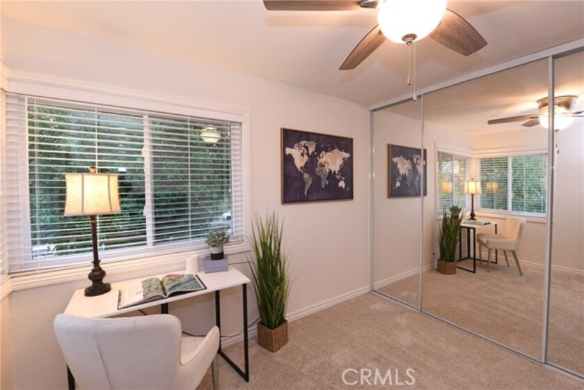 Wonderful opportunity to own gorgeously upgraded Fairmont Hill property with Hills and Sunset Views. This 3 bedroom 2.5 bathroom property has numerous stunning upgrades and amenities including: beautiful kitchen with granite countertops, stainless steel appliances & sink, open family room with ceiling fan, large plank tile flooring, double paned vinyl windows & slider, recessed lighting, crown molding, custom baseboards and window/door casing throughout, laundry room with newer built in storage, all bedrooms offer mirrored wardrobe closet doors, carpet, ceiling fans and window blinds, stunning remodeled modern main bathroom with large walk in shower appointed with glass doors, stone pebble floor, tile walls and beautiful fixtures, all 3 bathrooms have been beautifully remodeled, 2 car attached garage with built in storage and finished garage with drywall/texture/paint, large slider leads to enclosed patio with vinyl fence, pavers and artificial grass, steps from frontyard greenbelt, association amenities include playground, sport and sand courts, 2 swimming pools/spas, award winning schools and more. FABULOUS VIEWS from almost every room!