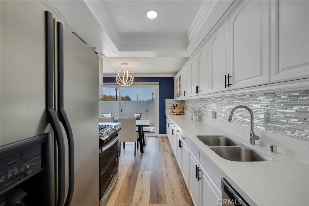 Welcome to this beautifully maintained Fairmont Hill condo, boasting 1,017 square feet of thoughtfully designed living space. This home features 2 bedrooms and 1.5 bathrooms, making excellent use of its layout. The property shines with all-new windows and a sliding glass door, ensuring an abundance of natural light throughout. The kitchen has been expanded from the original floor plan to offer additional prep space and storage, and it now includes modern pendant lighting, a stainless steel sink, and stunning quartz countertops. The entire home is refreshed with new paint and luxury vinyl tile (LVT) flooring, giving it a contemporary and cohesive feel. Both bathrooms have been tastefully renovated with modern finishes and fixtures, adding a touch of luxury to your daily routine. For parking, enjoy the convenience of an attached garage plus an additional reserved parking space. The front door and patio provide delightful views of Anaheim Hills' city lights, adding to the home's charm. Community amenities in Fairmont Hill are plentiful, featuring two swimming pools, a playground, and courts for volleyball and racquetball. The HOA covers basic cable, internet, and trash removal, ensuring a hassle-free living experience. This condo is perfectly located near the 91 Freeway, Yorba Linda Town Center, and Savi Ranch, offering easy access to shopping, dining, and entertainment. Outdoor enthusiasts will appreciate the proximity to Yorba Linda Regional Park. The property is located within in the prestigious Pla-Yorba Linda Unified School District, zoned for Glenknoll Elementary, the new Orange County School of Computer Science charter school, and Esperanza High School. Additionally, Fairmont Hill is FHA approved, making it an excellent opportunity for first-time homebuyers! Don't miss out on the chance to own this immaculate Fairmont Hill condo. Schedule a viewing today and discover why this exceptional home is perfect for you. 20385 Cranberry Lane; You Will LOVE Living Here!