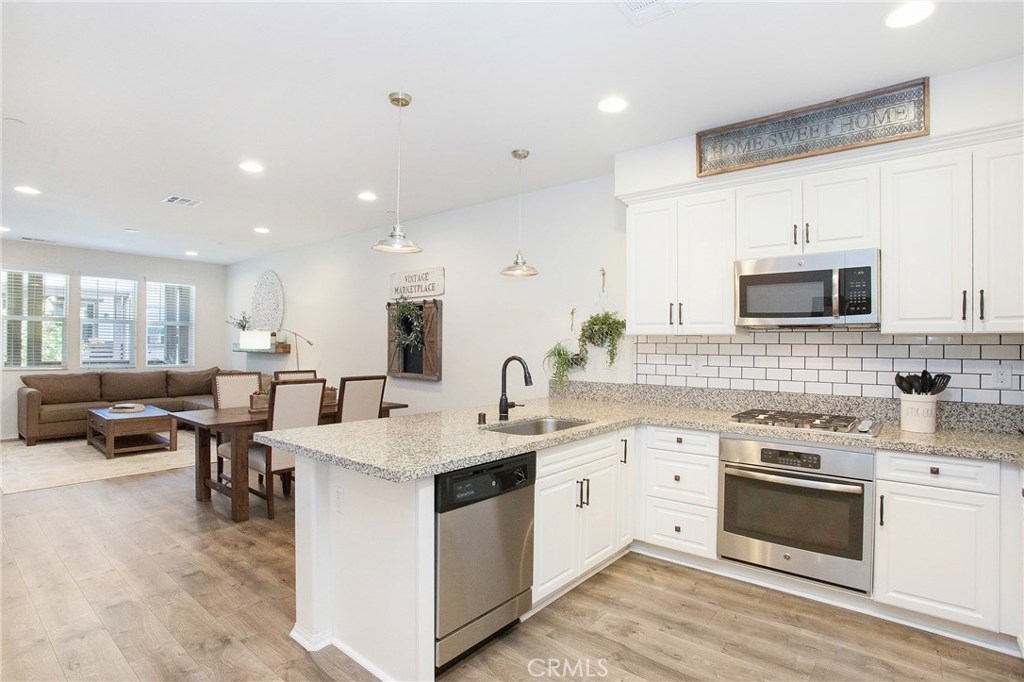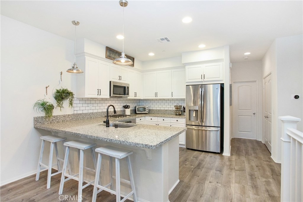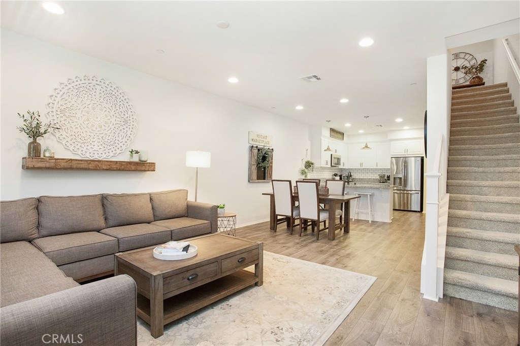 Absolutely Pristine and newly built, this light and bright, turn-key home is located in the highly desirable community of Heritage Crossings. Built in 2016, this interior facing home has been exceptionally maintained and thoughtfully upgraded throughout. The home offers 3 nicely sized bedrooms and an open floor plan with high-ceilings that seamlessly blend the kitchen, dining and living spaces creating an effortless flow. The stunning kitchen features light wood kitchen cabinets, granite counters, subway tile backsplash, updated hardware and modern appliances complete this stunning design. Adjacent to the kitchen is one of the bedrooms and a full bath, perfect for guests. The upper level features an en-suite bedroom with generously sized walk-in closet, conveniently located laundry room with cabinetry and Venetian stone flooring, and nicely sized master suite with upgraded shiplap paneling, barn door, dual-sink vanity and large walk-in closet with custom closets. Enjoy direct access into the home from a two-car tandem garage, private balconies, air conditioning, nest thermostats and recessed lighting throughout. Situated in a charming and coveted community in historic downtown Yorba Linda with outdoor entertaining spaces, BBQ areas, grassy areas and picnic areas all with low HOA dues. Ideal location in Yorba Linda with top-rated schools and freeway access close-by. You don’t want to miss this opportunity! Zillow 3D Tour Available