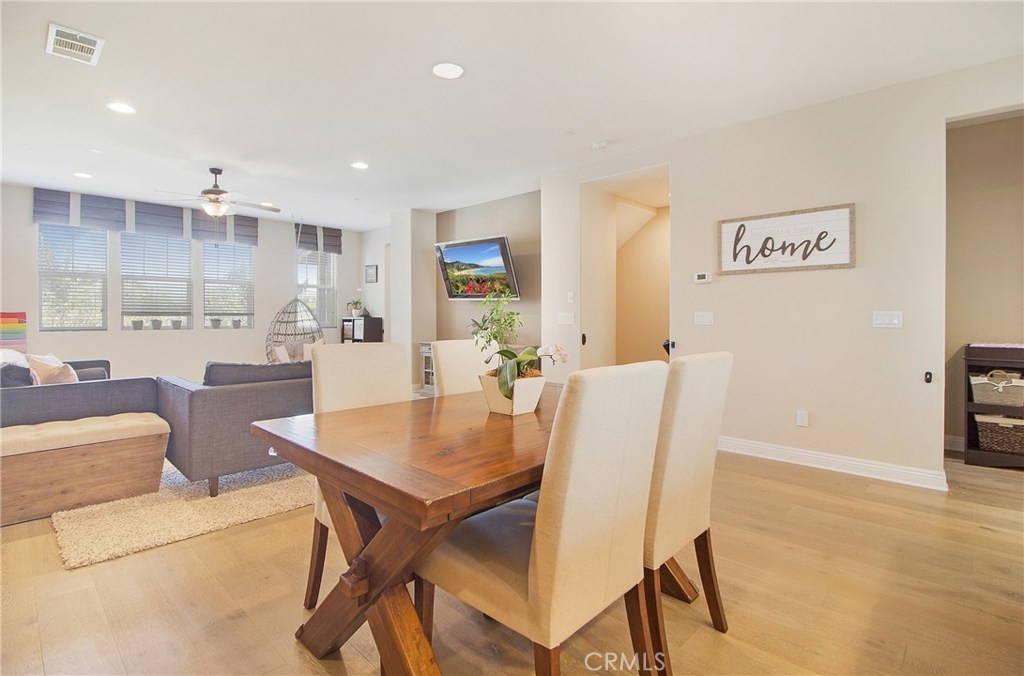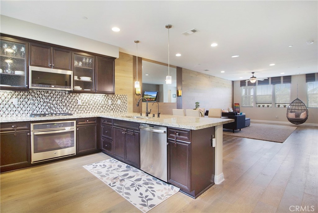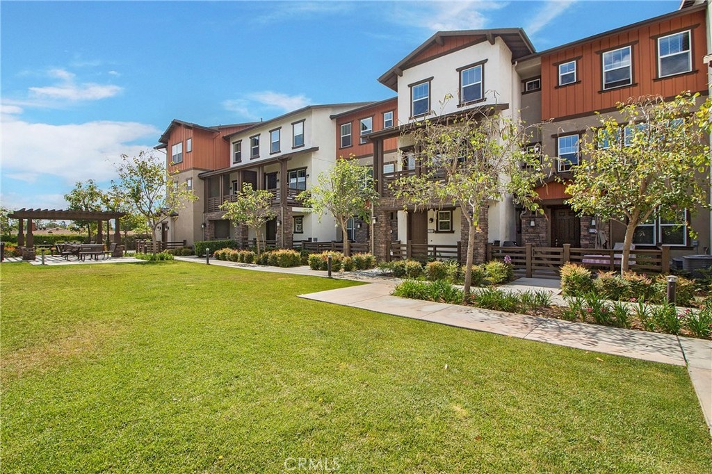 This gorgeous property is PERFECTLY LOCATED within the newly developed Heritage Crossing community because it is situated in the back of the complex with it's front door and large patio facing a lovely grassy picnic area. On the main level you will find a good sized room that can be used as a den, office space, or guest bedroom and has a full bathroom attached. The HUGE KITCHEN on the second level is loaded with upgrades including granite counter tops, custom cabinetry, GE Profile appliances, a large pantry, and tile backsplash. Adjacent to the kitchen is the dining area and elegant living room with an accent wall. On the third floor you will find two guest bedrooms, a full guest bathroom, a large laundry room with built-in cabinets, and a beautifully done master suite with walk-in closet, oversized soaking tub, dual sinks and separate shower. This condo is one of the builder’s original model homes, so it is loaded with over $80,000 of upgrades! Throughout most of the house you’ll notice beautiful wood flooring, high ceilings, bullnose corners, recessed lighting, built-in speakers and a built-in fire sprinkler system. Other features of the home include a built-in security system, tankless water heater, water softener system, hanging “Safe Rack” garage storage, wifi connected thermostats, two car garage and much more! The Heritage Crossing community has a very low HOA of only $207/month and NO Mello Roos. Nearby are great restaurants, shopping, and highly rated schools!