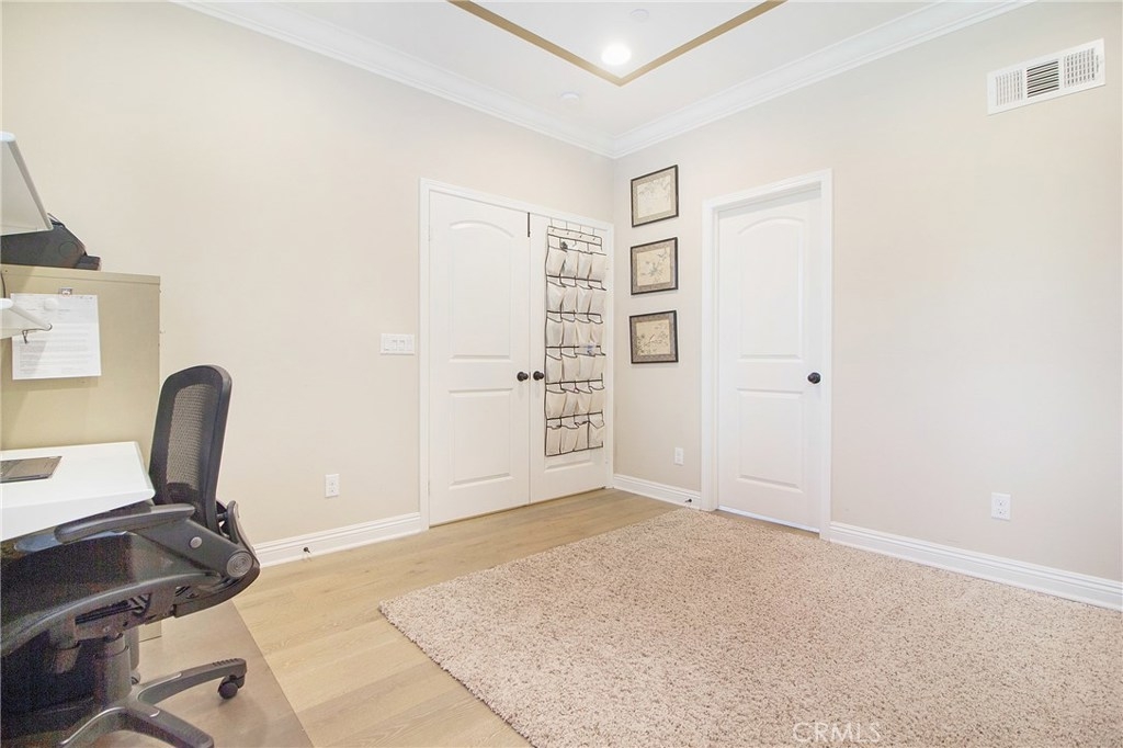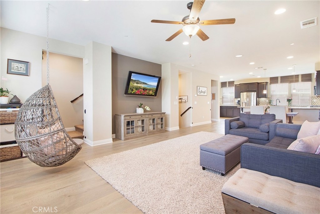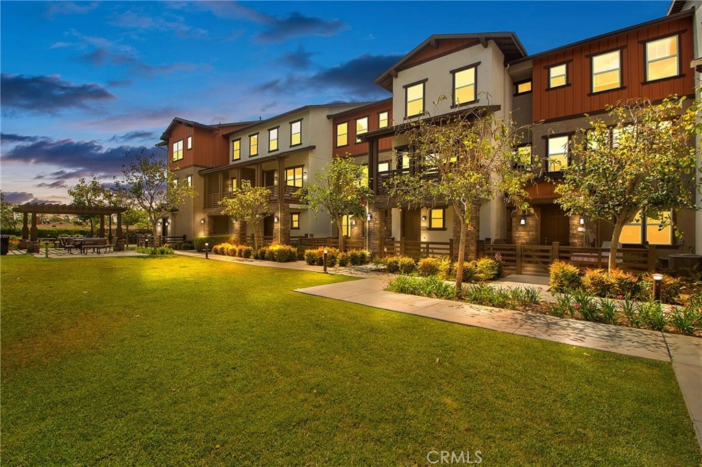 This gorgeous property is PERFECTLY LOCATED within the newly developed Heritage Crossing community because it is situated in the back of the complex with it's front door and large patio facing a lovely grassy picnic area. On the main level you will find a good sized room that can be used as a den, office space, or guest bedroom and has a full bathroom attached. The HUGE KITCHEN on the second level is loaded with upgrades including granite counter tops, custom cabinetry, GE Profile appliances, a large pantry, and tile backsplash. Adjacent to the kitchen is the dining area and elegant living room with an accent wall. On the third floor you will find two guest bedrooms, a full guest bathroom, a large laundry room with built-in cabinets, and a beautifully done master suite with walk-in closet, oversized soaking tub, dual sinks and separate shower. This condo is one of the builder’s original model homes, so it is loaded with over $80,000 of upgrades! Throughout most of the house you’ll notice beautiful wood flooring, high ceilings, bullnose corners, recessed lighting, built-in speakers and a built-in fire sprinkler system. Other features of the home include a built-in security system, tankless water heater, water softener system, hanging “Safe Rack” garage storage, wifi connected thermostats, two car garage and much more! The Heritage Crossing community has a very low HOA of only $207/month and NO Mello Roos. Nearby are great restaurants, shopping, and highly rated schools!