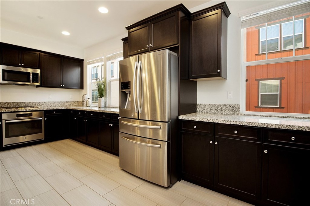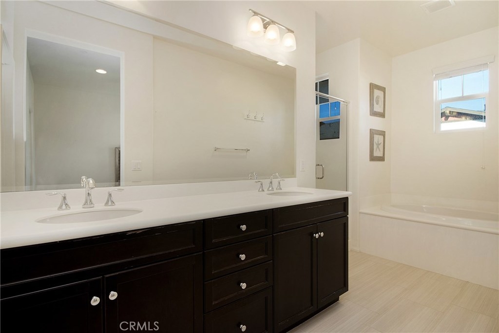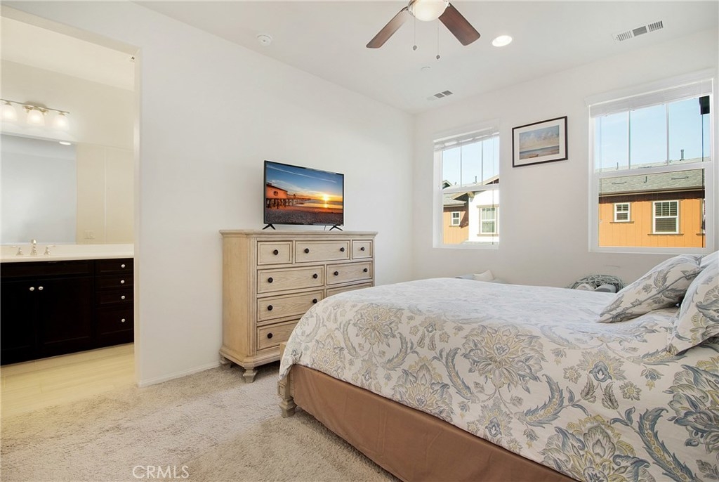 Come and see this beautiful home in the highly desirable Heritage Crossings neighborhood that can be yours. Built in 2016 and exceptionally well maintained the property features 3 levels and an open concept living plan. The fabulous kitchen features lots of upgrades including granite counters, stainless steel appliances, breakfast counter, and pantry. The upgraded kitchen is the very center of the home and opens to a bright and spacious dining and living room. The large master suite is on the 3rd level with a walk-in closet, master bathroom with dual sinks, glass framed shower and separate soaking tub. Master Suite is comfortably located next to the secondary bedrooms at this level. Laundry is located close to the bedrooms and has built-in cabinets. On the 1st level there is a 2 car garage and another bedroom with a full bathroom - ideal to give your guests comfort and privacy or use as your office. Roomy, private front yard and patio just perfect for entertaining! Enjoy meeting your friends and neighbors in the community using the common areas including an outdoor fireplace, built-in BBQ, and picnic tables. Great schools close by, parks, and shopping. This is the only home currently for sale in this amazing family community! The property is located on the 2nd row from the outside and does NOT back at the Yorba Linda Blvd.