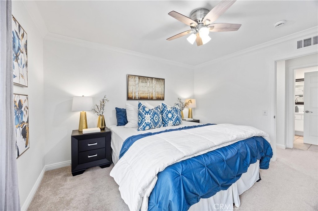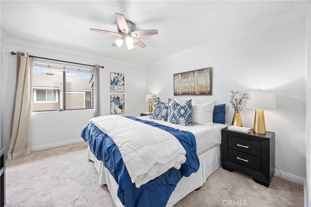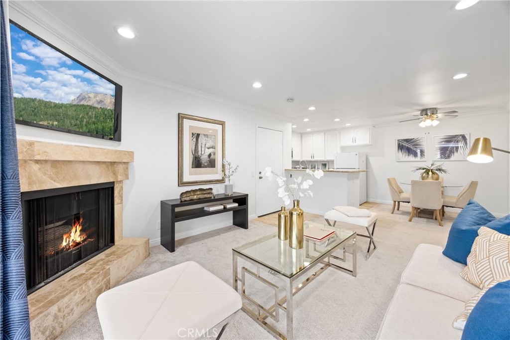 Tucked away in the tranquil, tree-lined Kellogg Terrace community, this beautifully appointed upper-level condo offers a lifestyle of peaceful elegance and everyday ease. Ideal for first-time buyers or those seeking a cozy retreat in one of Orange County’s most beloved cities, this 2-bedroom, 2-bathroom home is a bright and inviting haven surrounded by nature and local charm. Step inside and be welcomed by an airy, light-filled floor plan that instantly feels like home. The living room centers around a cozy fireplace, complemented by modern comfort and design that flows seamlessly throughout. This open-concept space invites both relaxation and connection—perfect for quiet nights or casual get-togethers. The kitchen is thoughtfully designed with generous cabinetry, modern appliances, and a breakfast bar, along with a dining nook for effortless everyday meals. Just beyond, a private balcony overlooks manicured greenbelts—your serene space for morning coffee or unwinding at dusk. Designed for both function and ease, the home includes an in-unit laundry room and recent upgrades like brand-new attic insulation and newly replaced AC ductwork—ensuring year-round comfort for the lucky new owner. The spacious primary suite features an en-suite bath, walk-in closet, and calming views of mature trees and the neighboring park. The second bedroom works beautifully for guests, a home office, or a growing family. Outside, Kellogg Terrace offers lush lawns, walkways, and a sparkling pool and spa—ideal for soaking in sunny weekends. Pet lovers and families will enjoy the open green spaces and proximity to playgrounds, picnic spots, and top-rated schools like Esperanza High. Weekend escapes are minutes away at Yorba Linda Regional Park, Yorba Linda Country Club, and the scenic Santa Ana River Trail, which leads all the way to Huntington or Newport Beach. Everyday convenience is just around the corner with shopping at Target, Costco, Sprouts, Bristol Farms, and Tokyo Central. Locals dining favorites include Stefano’s Golden Baked Ham, and Baran Mediterranean restaurant. Commuters will appreciate quick access to Anaheim Canyon Metrolink Station—with easy rail connections to Los Angeles and San Diego—and close proximity to the 91 Freeway, Toll Roads, and Imperial Highway. Peaceful, stylish, and perfectly located—this Yorba Linda gem delivers a true sense of home. Don’t miss your chance to experience the charm and beauty of life at Kellogg Terrace.
