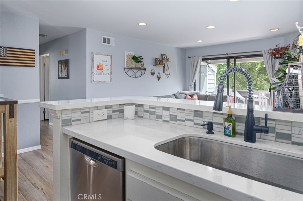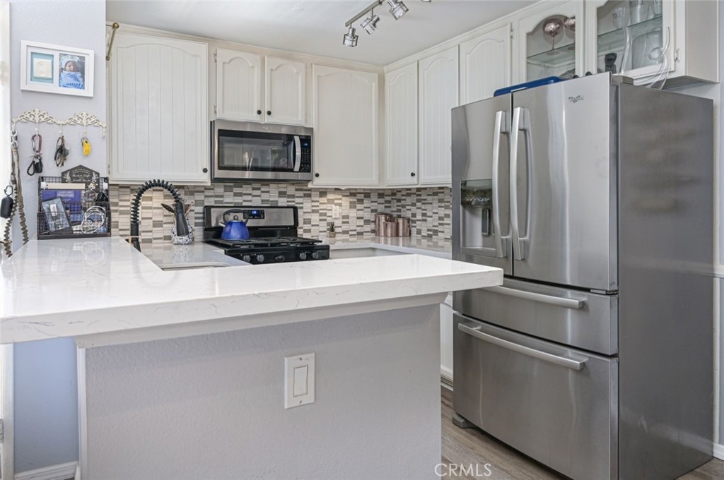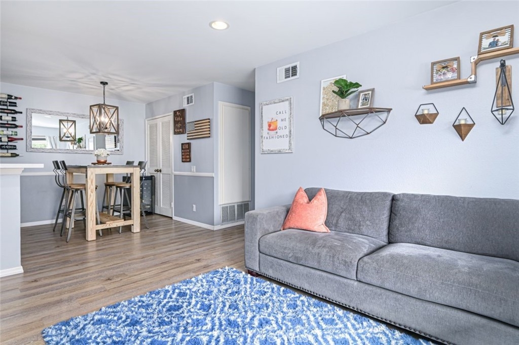 Live the good life in this gorgeous, remodeled upstairs unit nestled in the quiet complex of Kellogg Terrace. As you step through the entry door you'll be impressed by the open concept floorplan revealing a family room with a slider to the balcony and a dining room adjacent to the thoroughly modern kitchen. The recent remodel showcases a kitchen with new water proof vinyl plank floors, new stainless steel appliances, large SS sink, a gooseneck faucet, stunning glass tiled backsplash and recessed lighting. Recent upgrades include new vinyl plank floors gracing the entire home along with a freshly painted interior,, upgraded bathrooms with quartz countertops and new wood blinds. The nursery (second bedroom) has a door to the second bathroom which makes for a two MASTER floorplan with LARGE walk-in closets! The quaint balcony, roomy enough for a BBQ and bistro table, is the location of the laundry closet which fits a full sized washer and dryer! From the balcony enjoy the beautiful grounds of the exterior with green belts and mature trees. The community is well-maintained and recently underwent an exterior remodel with new siding, refinished patio decks, and paint. Other amenities include a pool, spa, playground and a large park area. Kellogg Terrace is nestled in the upscale city of Yorba Linda with it's award winning schools, easy freeway access, plentiful walking trails and parks and is close to shopping and restaurants. Welcome home!