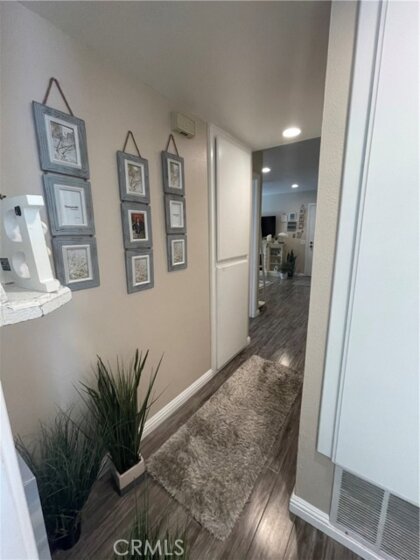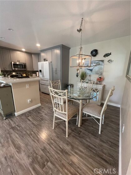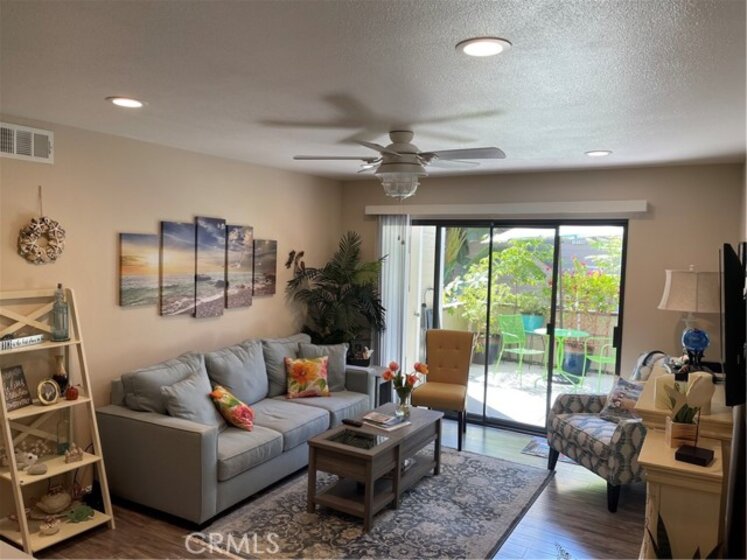Yorba Linda: The Land of Gracious Living! This home is gorgeous inside with no stone unturned! This beautiful 2 bedroom, 1 bath home is centrally located in town. As you enter the property you will notice the beautiful plank flooring throughout. The kitchen features new grey upscale soft-close cabinets and drawers, stainless steel appliances and plenty of storage. The dining room is open to the kitchen and living room perfect for entertaining. The Bathroom has been nicely upgraded as well with a very modern vanity and top, much to beautiful to describe....one must take a look for themselves! Both bedrooms are very spacious and have new mirrored closet doors and ceiling fans! This home is equipped with private laundry hook ups which are conveniently located off the patio. One of the best aspects of this home is the location within the Kellogg Terrace community.. This is an end unit downstairs located towards the back of the complex. Quiet area and close to parking. The community offers pool, spa and playground areas.