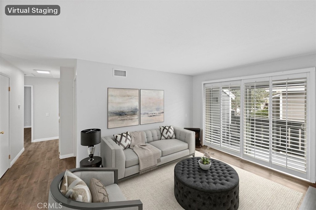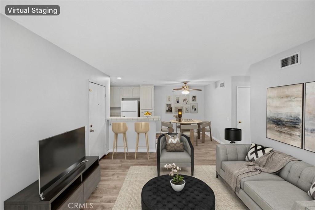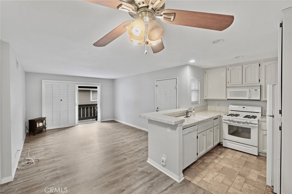 Updated price, estate is ready to sell!! Private upstairs single level, beautifully treelined community, true corner unit. This property features 2 bedrooms 1 bath, with its own peaceful deck and built in laundry room/storage space. Also includes upgraded laminate wood floors, tile kitchen area, and wood shutters. The adjacent assigned car space will provide easy access to your front door. Kellogg Terrace Community is set in a resort style atmosphere, boasting a pool, jacuzzi, playground, and beautiful greenbelts. This centrally located community has an award winning school district, trendy restaurants, shopping, and entertainment.