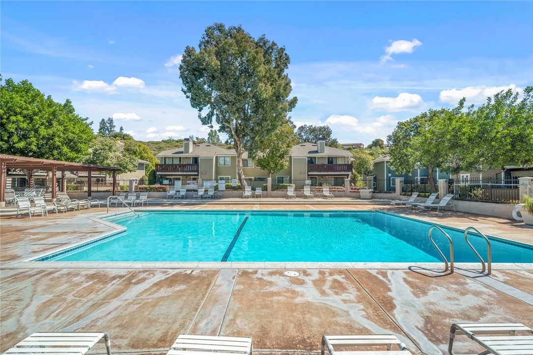 Welcome to the Land of Gracious Living! This is a beautiful 2 bedroom, 1 bath home centrally located in Yorba Linda. As you enter the property you will notice the luxury vinyl plank floors throughout the home. The kitchen features newly painted white cabinets, gas range, dishwasher and plenty of storage. The dining room is open to the kitchen and living room perfect for entertaining. One of the best aspects of this home is the view of the greenbelt from the paved patio. The beautiful open greenbelt is perfect for picnics and family time! This home is equipped with private laundry hook ups which are conveniently located off the patio. The community offers pool, spa and playground areas. This home is perfect for a small family, first time buyer!