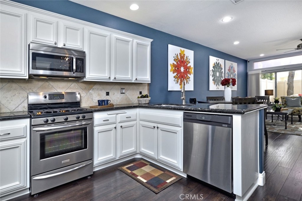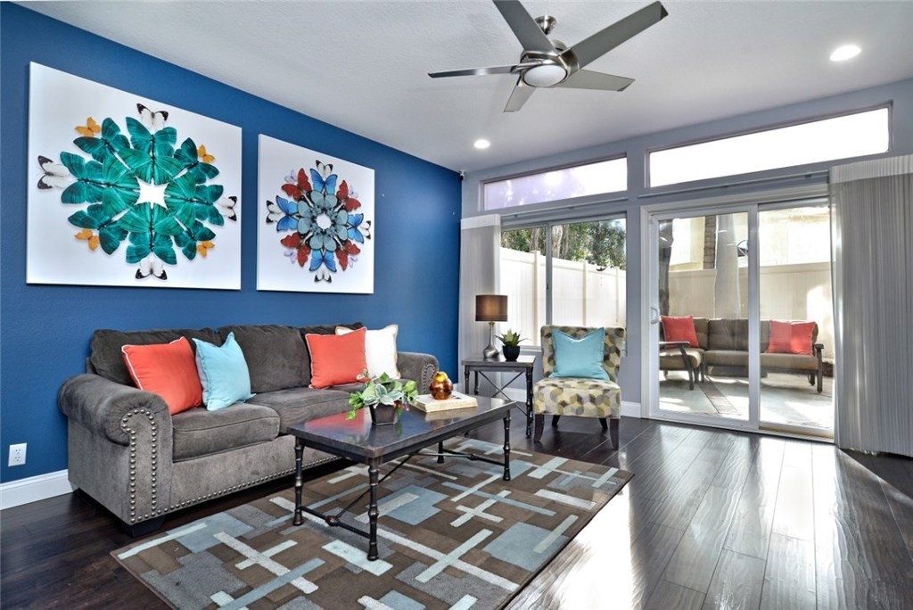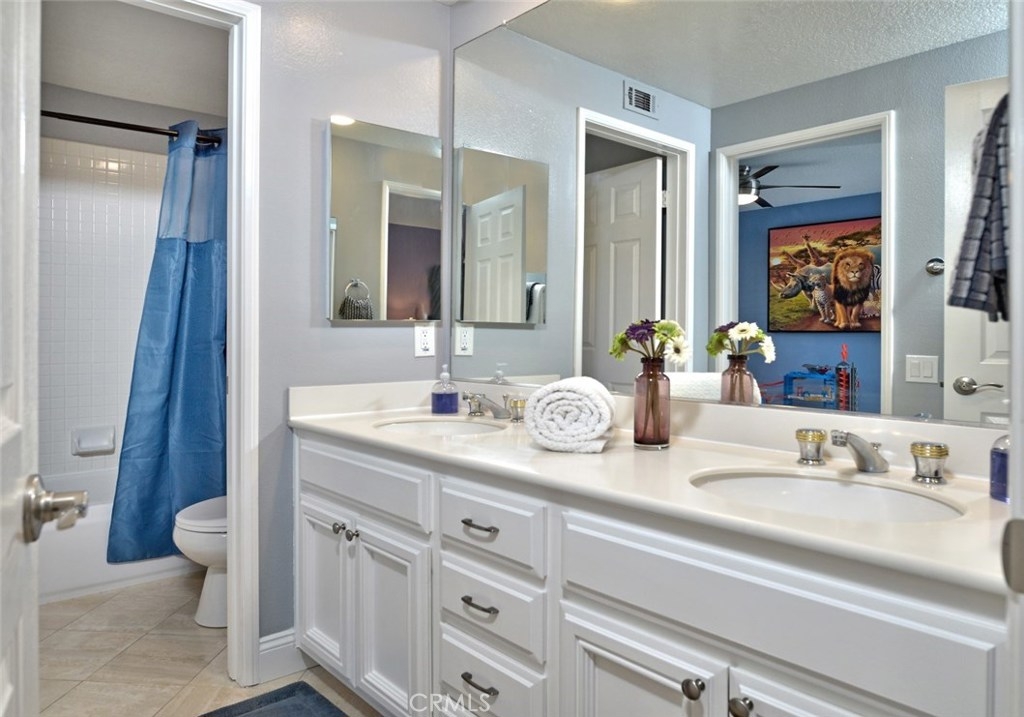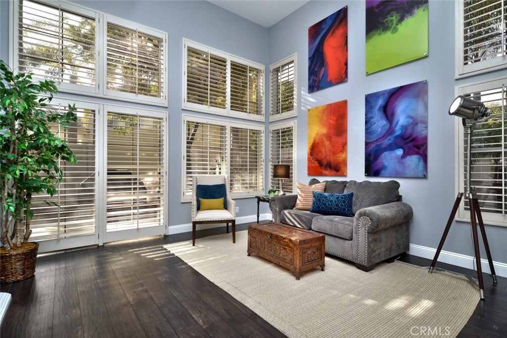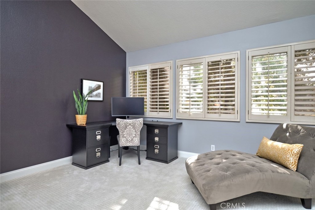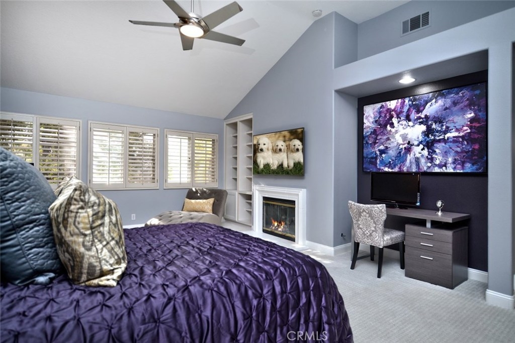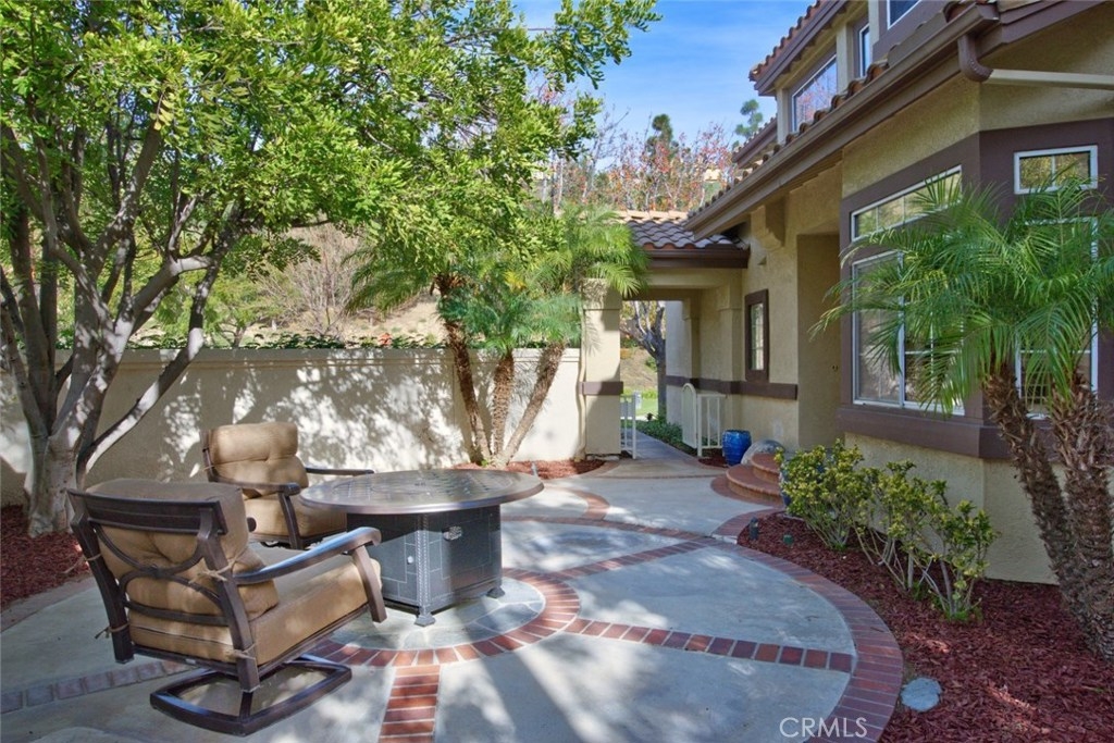 La Terraza is a beautiful community in the hills of Yorba Linda designed for busy lifestyles.These lovely paired homes feature low-maintenance yards for outdoor living plus stunning association pools & spas so you have all the enjoyment & none of the work!With the look of a single family home,this home sits on a greenbelt & has a full size driveway.You enter the home through a side courtyard that creates a wrap around with the backyard.Entering the home,you look through the formal dining room with bay window through to the light filled living room with soaring ceilings & a wall of windows.Rich wood flooring adorns the downstairs floors & plantation shutters accent the windows.A double sided fireplace sits between the living & family room with built-ins.A breakfast nook & kitchen with stainless steel appliances opening to the family room creates a great room overlooking the backyard.There's a spacious main floor bedroom with bay window & adjacent bath ideal for guests or a home office.Upstairs,an open landing overlooks the foyer & leads to a gorgeous master suite with fireplace,huge walk-in closet & opulent bath with soaking tub,double vanities-one with make-up desk,a separate step-in shower & privacy door to the commode.On the opposite side of the stairs are 2 spacious bedrooms that share a Jack 'n Jill bath with double vanity & tub/shower combo.The laundry room is conveniently located on the bedroom level.This amazing home will invigorate your senses! Come make it yours!