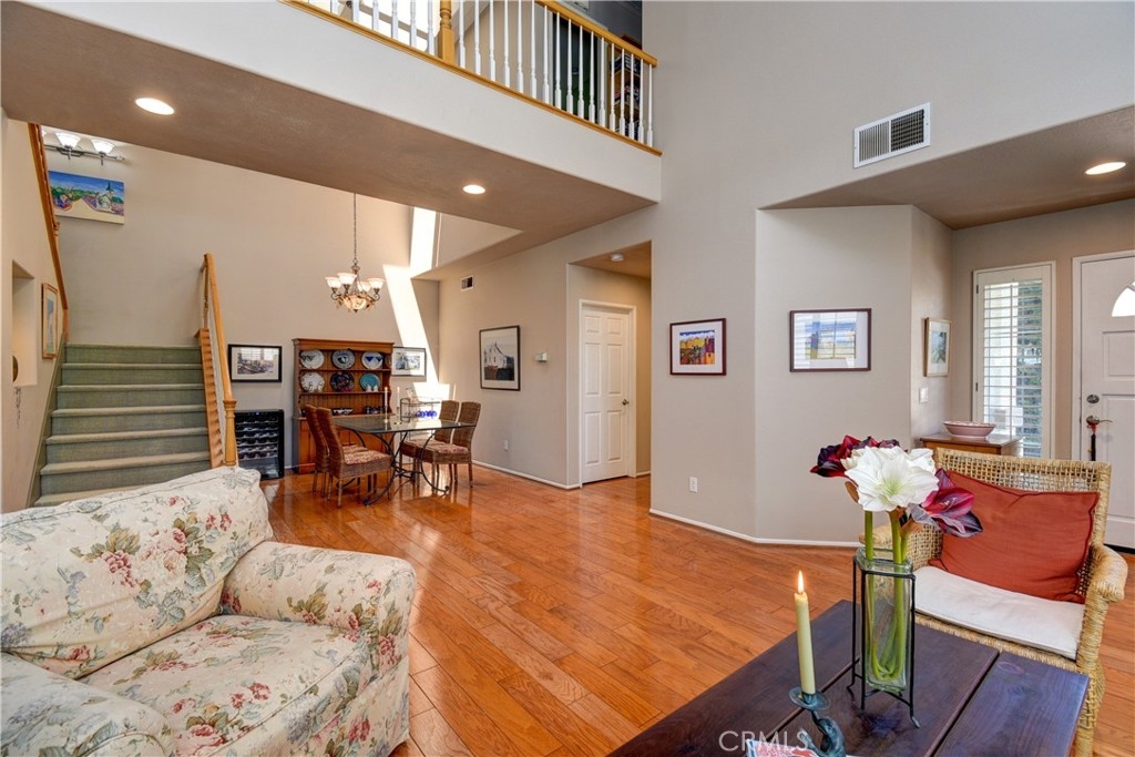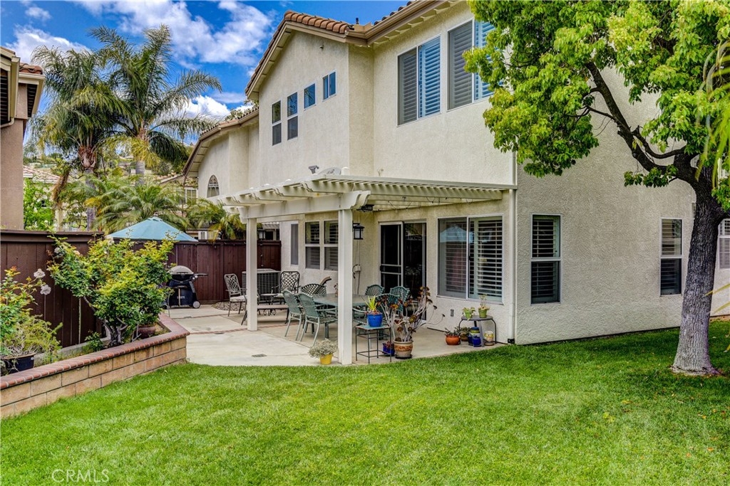 It's all about the view!! Wake each morning to breathtaking canyon hills views just outside your bedroom window. The living room with soaring ceilings and a wall of windows provides a generous amount of light making the home bright and welcoming. There is an updated double-sided fireplace in both living area and family room perfect for those chilly evenings. The large dining area is perfect for large gatherings with friends and family. The kitchen includes stainless appliances and newly refinished cabinetry and is the perfect spot for the chef in the family. Surrounding the fireplace in the family area are custom built-in cabinets for all your needs. Upstairs to the Master Bedroom you will find a sizeable room with amazing views. The master bath offers the convenience of double sinks, a soaking tub and amble closet for him and her. The secondary bedrooms are both spacious with a hall bath that services both bedrooms. There is a loft area that could easily be a fourth bedroom or the perfect office/study space. Downstairs and out the back door you will enjoy a secluded and private yard with spectacular views, plenty of grass, 5 palms, a Meyer lemon tree and lots of flowers. The yard is the perfect area for children to play as well as a wonderful space for enjoying time on your patio with friends and family. La Terraza includes Tennis court, basketball court, pool with jetted spa. This beautiful home is very close to bike trails, hiking trails, all major freeways, toll roads, shopping, entertainment and is also walking distance to Bryant Ranch School.
