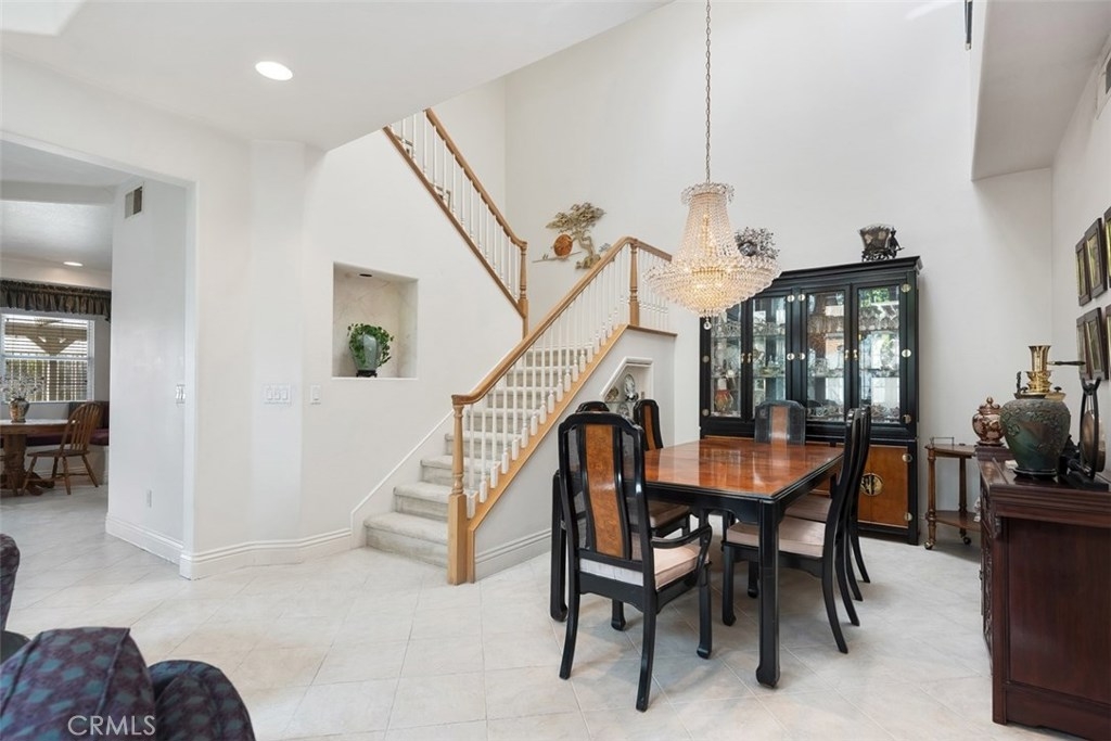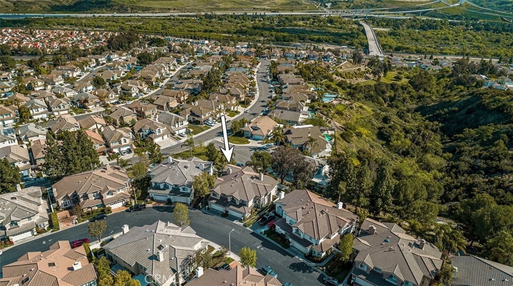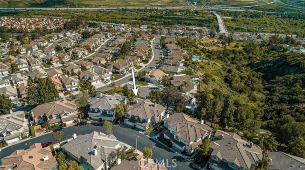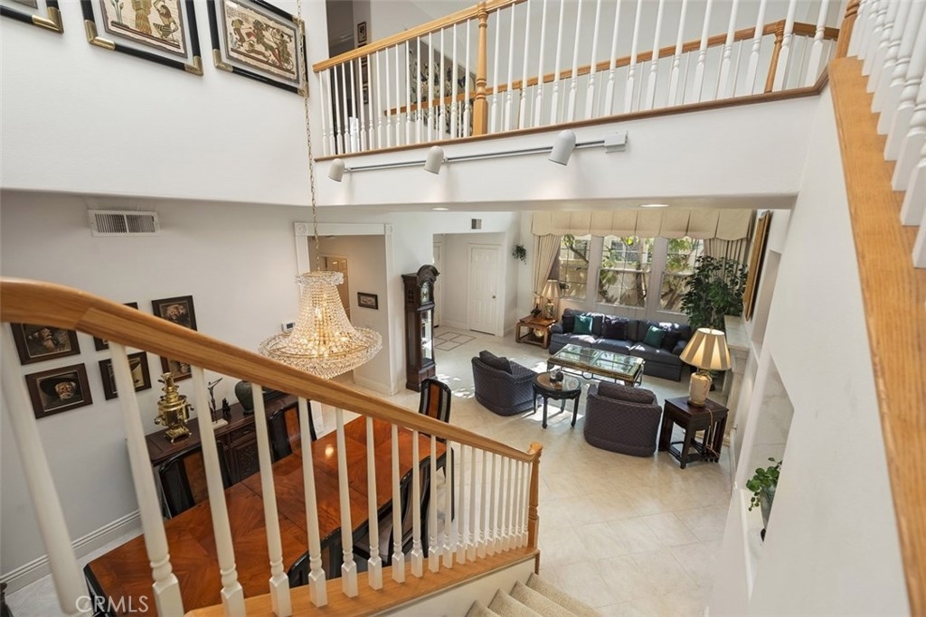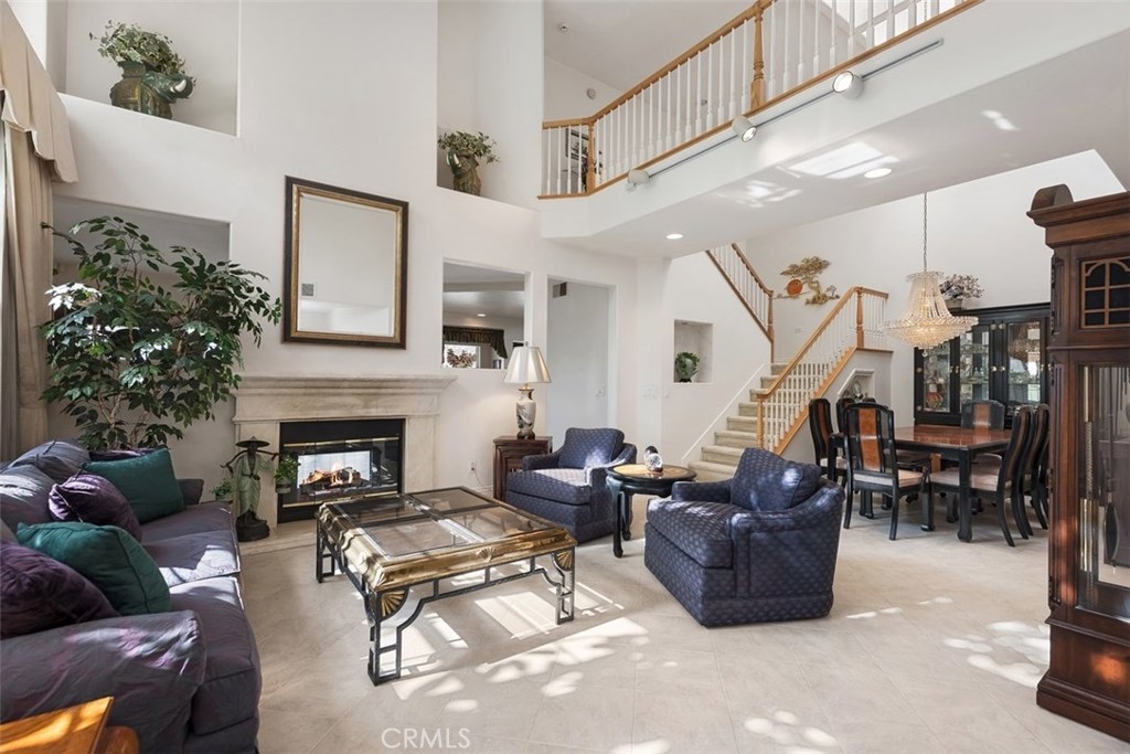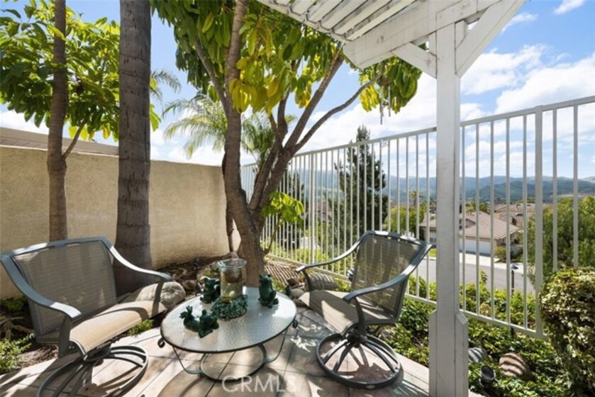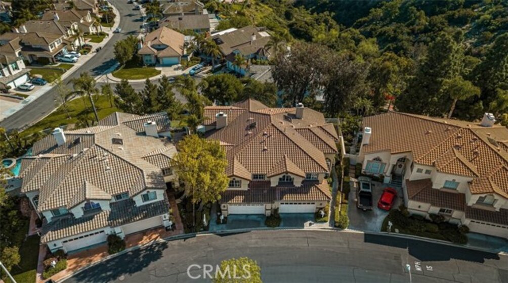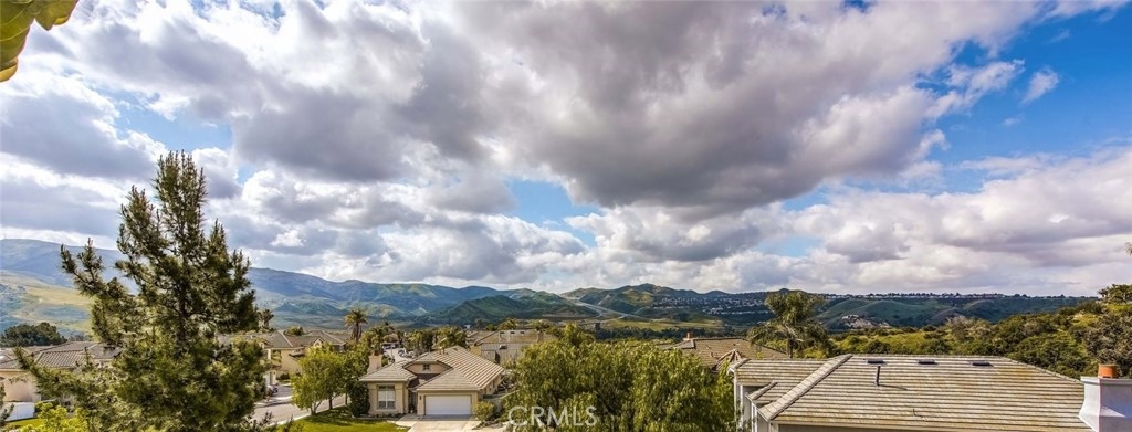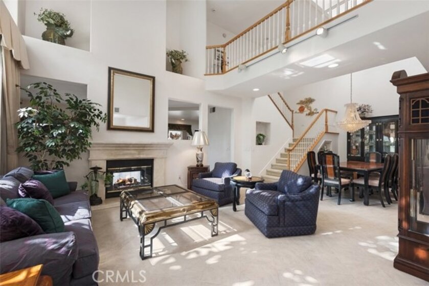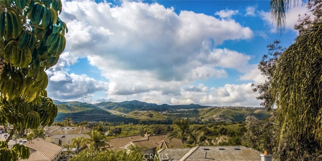 Sophisticated architecturally beautiful 4 bedroom, 2 1/2 bath home located in the La Terraza community in the hills of Yorba Linda. Fabulous views of hills & valley from family room, kitchen & master bedrooms. Elegant living room with stunning two story ceiling, multiple windows, recessed lighting & dual fireplace. Adjacent formal dining room with skylight & gorgeous chandelier. Tile floors throughout the downstairs with inlaid granite near the front door & in front of fireplace in the family room. Open & inviting kitchen with granite counter tops, large island & good sized walk-in pantry. Family room is adjacent to the kitchen with see through fireplace, ceiling fan, & built in cabinets with glass doors on both sides of fireplace for displaying your favorite things. French doors lead to patio & allow for a stunning view of the hills and lights. Master bedroom is spacious & boasts high ceilings with ceiling fan & large walk-in closet. Large master bathroom includes deep soaking tub, separate glass shower enclosure, dual sinks, granite counters & tile floors with. 3 more upstairs bedrooms & additional hall bathroom which includes dual sinks, tub and shower. Downstairs laundry room with additional storage closet. Relaxing back yard patio offers views of the hills, valley & evening lights. Assoc. amenities include 2 pools, 2 spas, sport court & tennis court. Award winning Placentia Yorba Linda School District. MATERPORT VIRTUAL TOUR BELOW MAP, it is labeled VT with a camera.