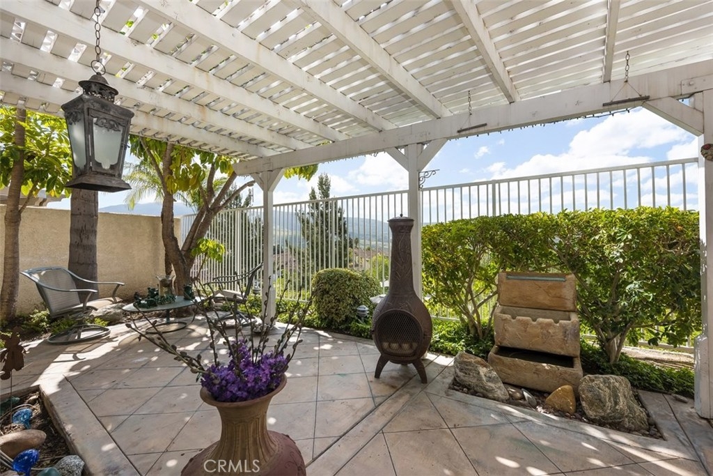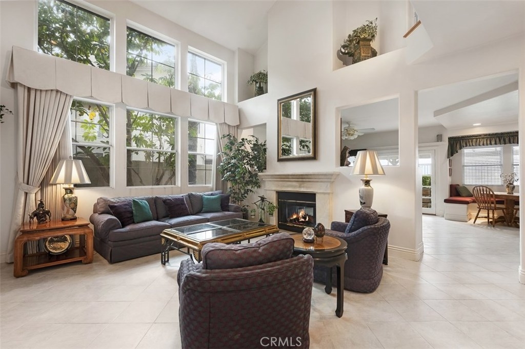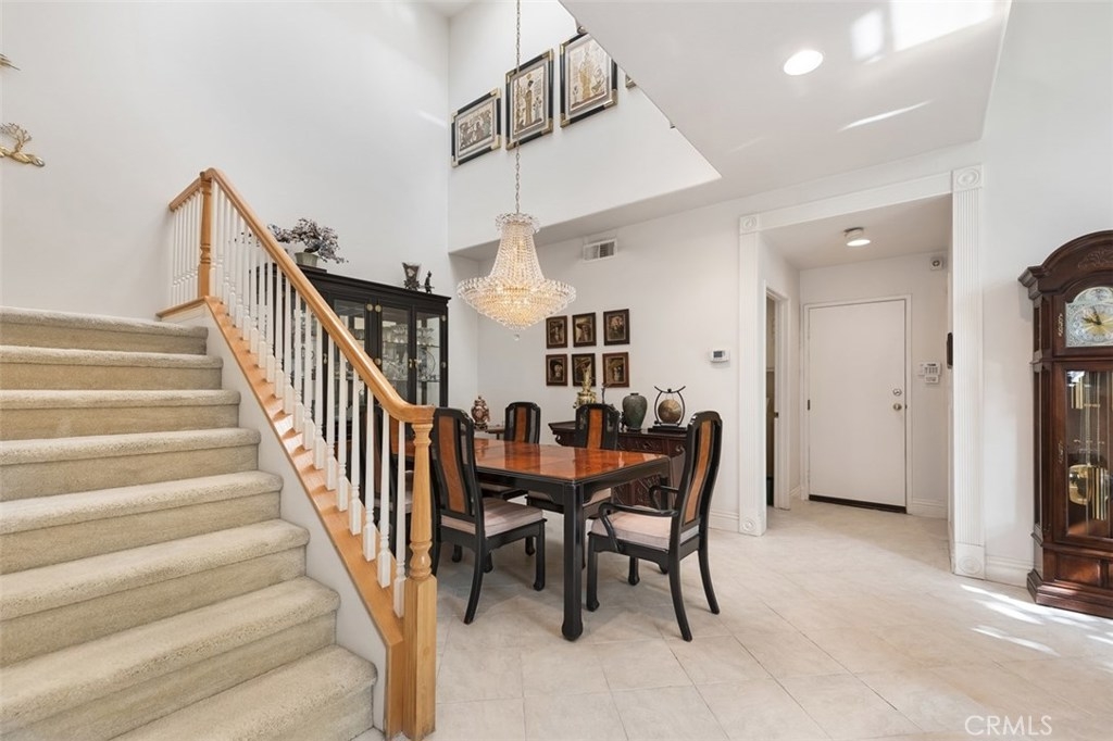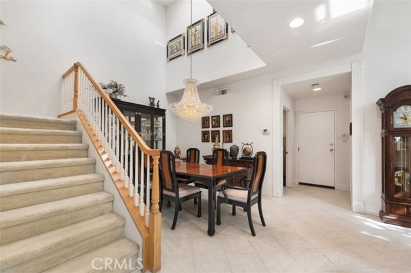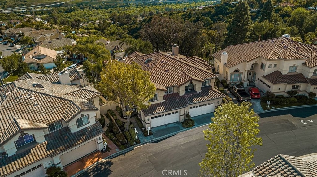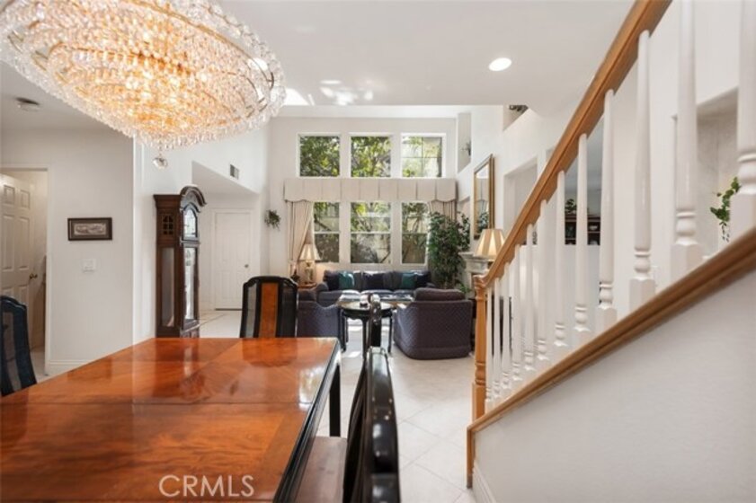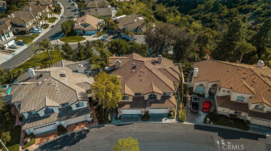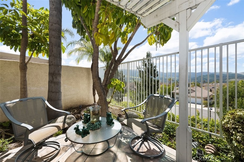 Sophisticated architecturally beautiful 4 bedroom, 2 1/2 bath home located in the La Terraza community in the hills of Yorba Linda. Fabulous views of hills & valley from family room, kitchen & master bedrooms. Elegant living room with stunning two story ceiling, multiple windows, recessed lighting & dual fireplace. Adjacent formal dining room with skylight & gorgeous chandelier. Tile floors throughout the downstairs with inlaid granite near the front door & in front of fireplace in the family room. Open & inviting kitchen with granite counter tops, large island & good sized walk-in pantry. Family room is adjacent to the kitchen with see through fireplace, ceiling fan, & built in cabinets with glass doors on both sides of fireplace for displaying your favorite things. French doors lead to patio & allow for a stunning view of the hills and lights. Master bedroom is spacious & boasts high ceilings with ceiling fan & large walk-in closet. Large master bathroom includes deep soaking tub, separate glass shower enclosure, dual sinks, granite counters & tile floors with. 3 more upstairs bedrooms & additional hall bathroom which includes dual sinks, tub and shower. Downstairs laundry room with additional storage closet. Relaxing back yard patio offers views of the hills, valley & evening lights. Assoc. amenities include 2 pools, 2 spas, sport court & tennis court. Award winning Placentia Yorba Linda School District. MATERPORT VIRTUAL TOUR BELOW MAP, it is labeled VT with a camera.