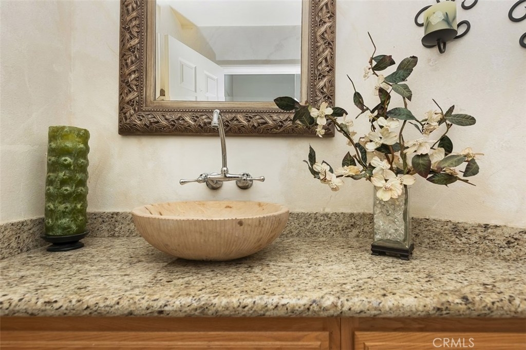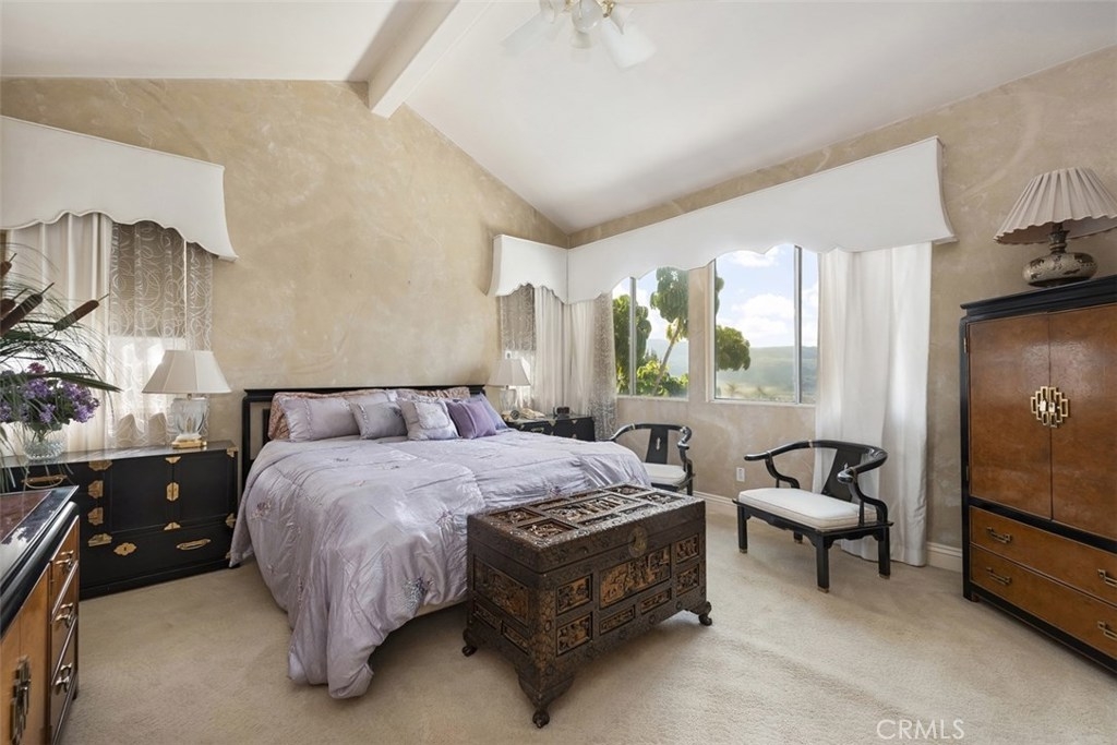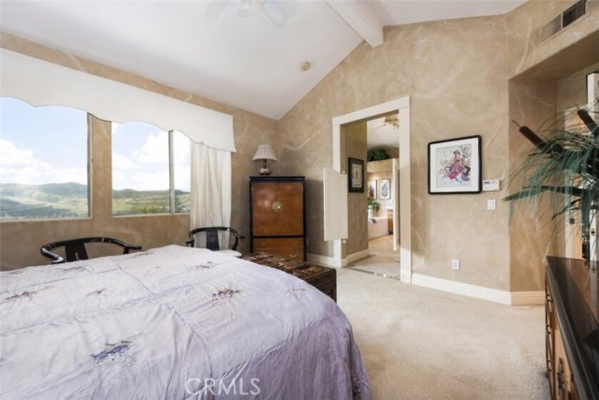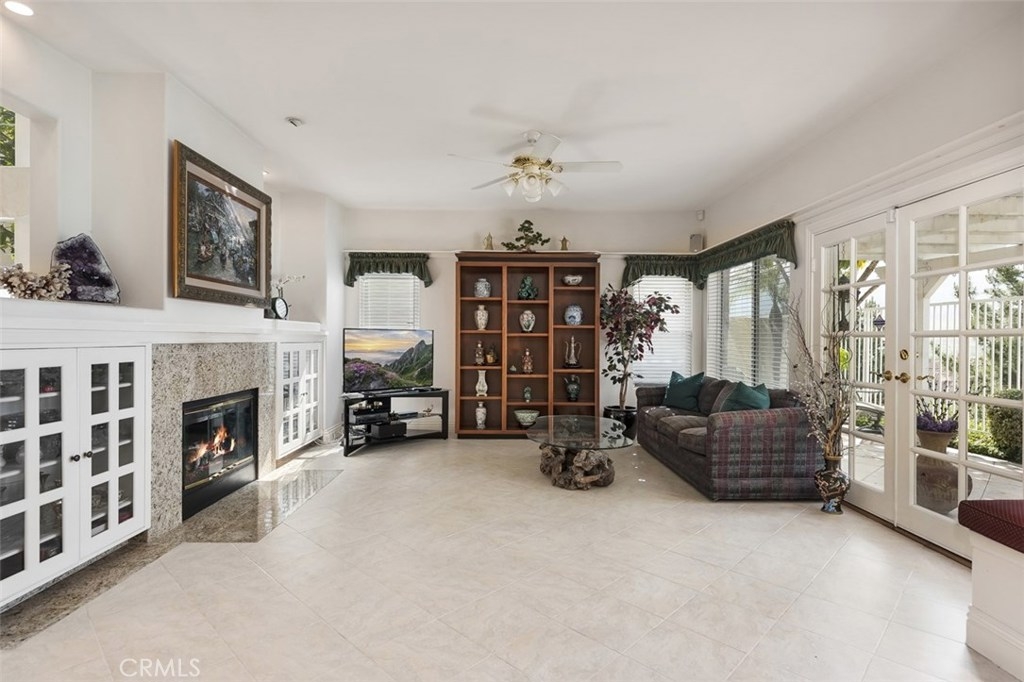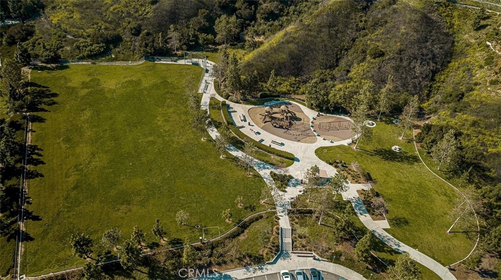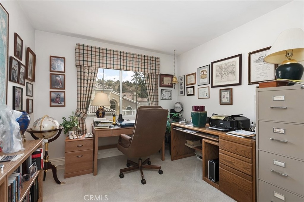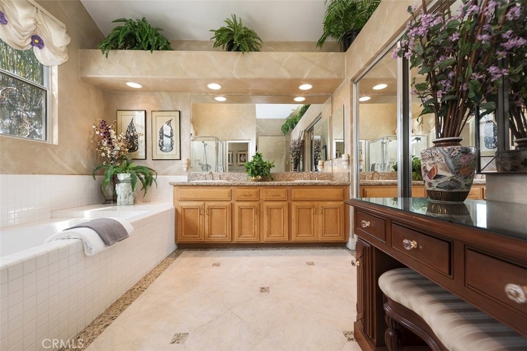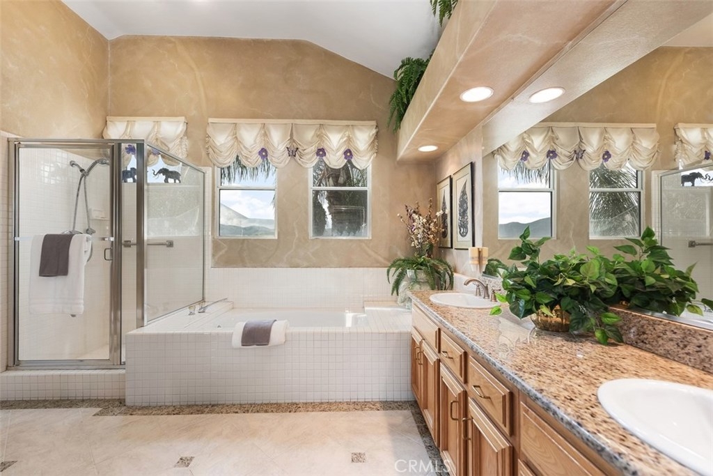 Sophisticated architecturally beautiful 4 bedroom, 2 1/2 bath home located in the La Terraza community in the hills of Yorba Linda. Fabulous views of hills & valley from family room, kitchen & master bedrooms. Elegant living room with stunning two story ceiling, multiple windows, recessed lighting & dual fireplace. Adjacent formal dining room with skylight & gorgeous chandelier. Tile floors throughout the downstairs with inlaid granite near the front door & in front of fireplace in the family room. Open & inviting kitchen with granite counter tops, large island & good sized walk-in pantry. Family room is adjacent to the kitchen with see through fireplace, ceiling fan, & built in cabinets with glass doors on both sides of fireplace for displaying your favorite things. French doors lead to patio & allow for a stunning view of the hills and lights. Master bedroom is spacious & boasts high ceilings with ceiling fan & large walk-in closet. Large master bathroom includes deep soaking tub, separate glass shower enclosure, dual sinks, granite counters & tile floors with. 3 more upstairs bedrooms & additional hall bathroom which includes dual sinks, tub and shower. Downstairs laundry room with additional storage closet. Relaxing back yard patio offers views of the hills, valley & evening lights. Assoc. amenities include 2 pools, 2 spas, sport court & tennis court. Award winning Placentia Yorba Linda School District. MATERPORT VIRTUAL TOUR BELOW MAP, it is labeled VT with a camera.