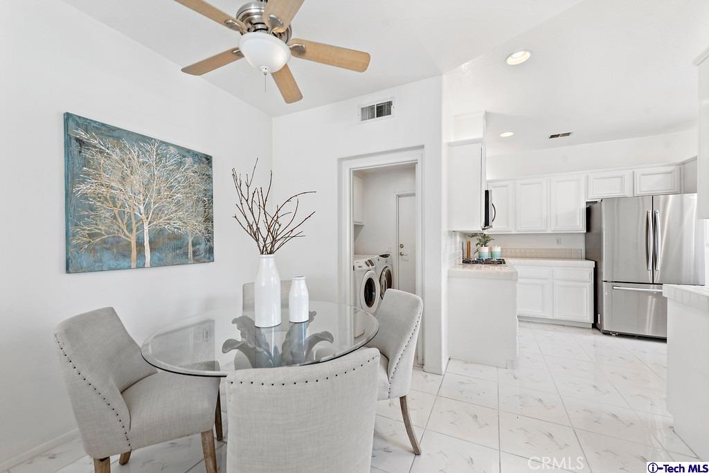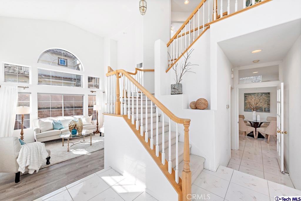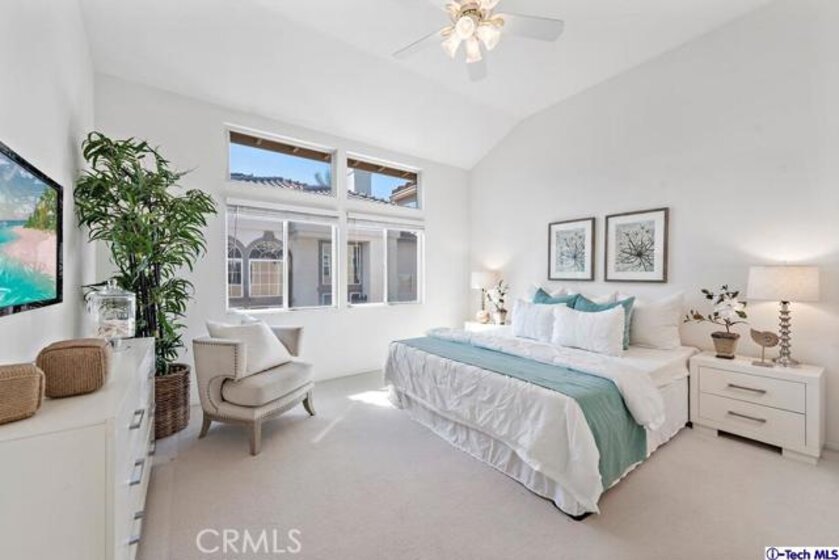 Don't miss this opportunity to join the La Terraza Community and schedule time to tour this beautiful home. Highlights of this unit are the high vaulted ceilings and walls of windows that draw in tons of natural light. The kitchen is conveniently located between the casual breakfast nook and formal dining room. The adjoining formal living room and family room provide ample space for small, intimate gatherings or large parties. Directly off of the family room is a patio perfect for entertaining or soaking in the sun. Venture upstairs and you'll find the spacious primary bedroom with its full bath and walk-in closet, two more bedrooms, and a shared full bathroom. This lovely home in the popular La Terraza Community provides many amenities for its residents to enjoy including two swimming pools, tennis courts, and conveniently located by the Bryant Ranch Park.