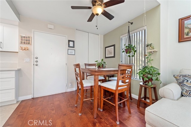 Welcome to your charming oasis in a vibrant 55+ community! This beautifully remodeled condo, built in 1982, offers an inviting 580 square feet of thoughtfully designed living space. Step inside to discover stunning laminate flooring throughout, creating a warm and welcoming atmosphere. The bright and airy living room seamlessly flows into the dining area, perfect for both entertaining friends and enjoying quiet meals at home. The well-appointed kitchen features modern Corian countertops and is open to the living and dining areas, ideal for social gatherings. Natural light pours in through The windows, enhancing the spacious feel of this delightful home. Your tranquil primary suite boasts a generous walk-in closet and convenient access to the charming balcony, also accessible from the living room, which provides a peaceful retreat for enjoying neighborhood views and fresh air. Additional comforts include air conditioning for those warm summer days and easy access to the building’s elevator and the ramp that makes this seem as though its on the first level. This is a level unit but is on the second floor. This condo is truly a hidden gem, combining convenience and style in a picturesque setting. Experience the ease of low-maintenance living with community amenities that enhance your lifestyle. Don’t miss this opportunity to own a wonderful home in a great community! There is also a large clubhouse as well as a library within the clubhouse. Located just across the street from the Yorba Linda town center, you'll have easy access to shopping, dining, entertainment and a local coffee shop that is just down the road. The library and cultural center are also close by. Schedule your private tour today and picture yourself calling this place home.