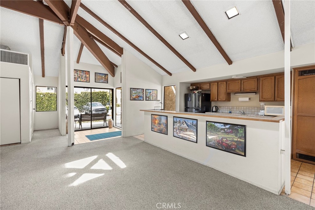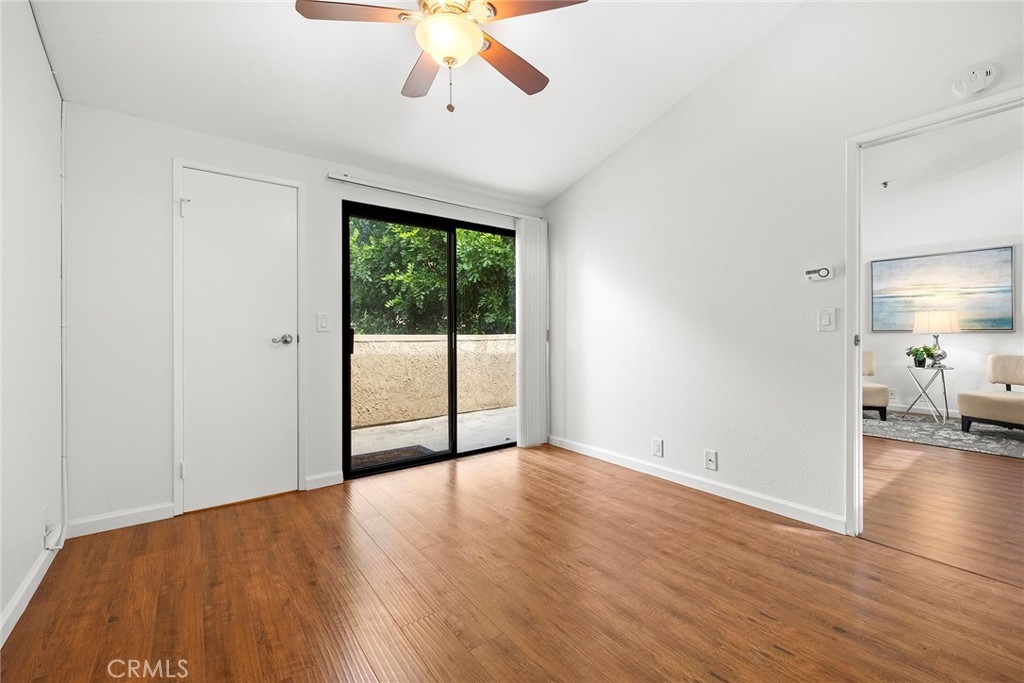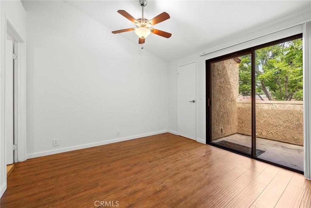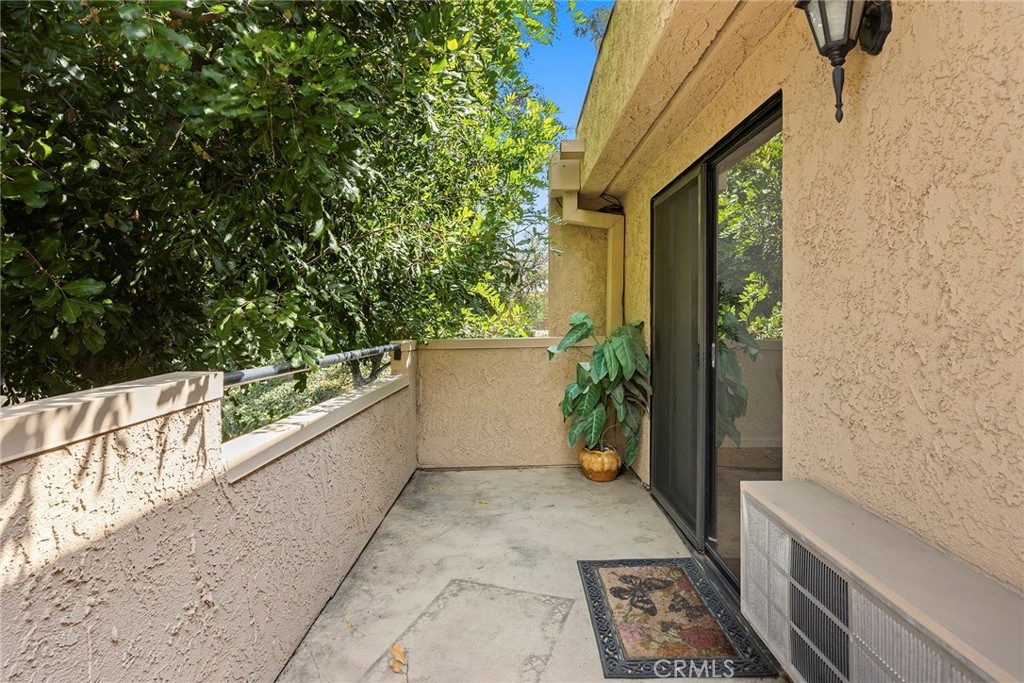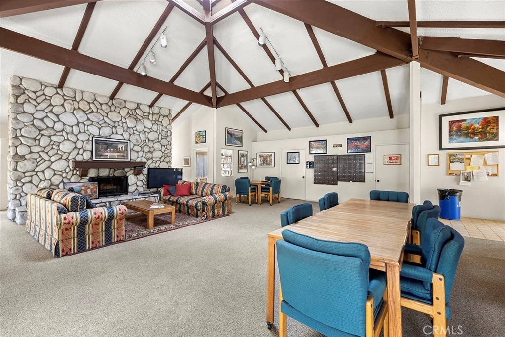 Welcome to this beautifully maintained upper end-unit nestled in a lushly landscaped, gated 55+ community. Enjoy serene greenbelt views from your spacious private balcony. Inside, the bright and airy living area features soaring cathedral ceilings with high accent windows that let in an abundance of natural light. The open-concept layout includes a dining area with a handy storage closet or pantry, and a well-equipped kitchen featuring a gas range, built-in microwave, refrigerator, and even a Samsung all-in-one washer/dryer combo—perfect for everyday laundry needs. For larger loads, a shared laundry room is conveniently located just one floor below. The inviting bedroom offers direct access to the balcony through a sliding glass door, along with both a walk-in and wardrobe closet for ample storage. The full bathroom includes built-in linen storage for added convenience. Community amenities include a spacious recreation room complete with a full kitchen, cozy fireplace, card tables, and a peaceful reading lounge. Residents also enjoy regular social events like monthly potlucks—fostering a warm, friendly atmosphere. Located just across the street from the vibrant Yorba Linda Town Center, you'll have easy access to shopping, dining, entertainment and a local coffee shop are just down the road. This isn’t just a place to live—it’s a great community to be part of. Come take a look and see if it feels like home!