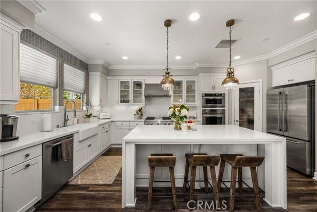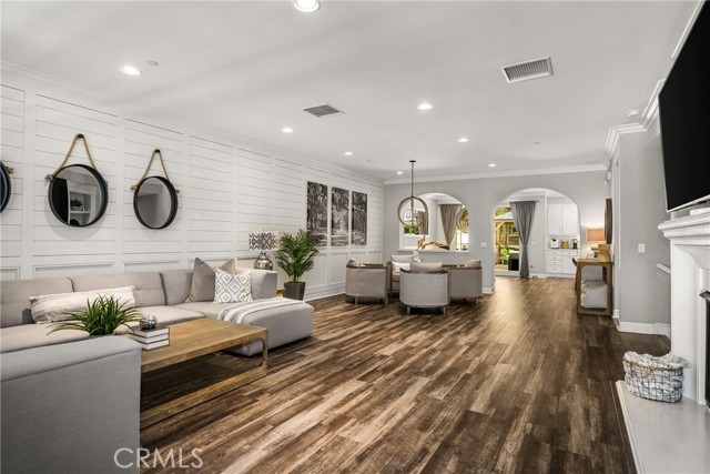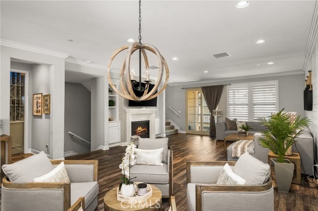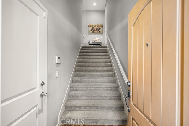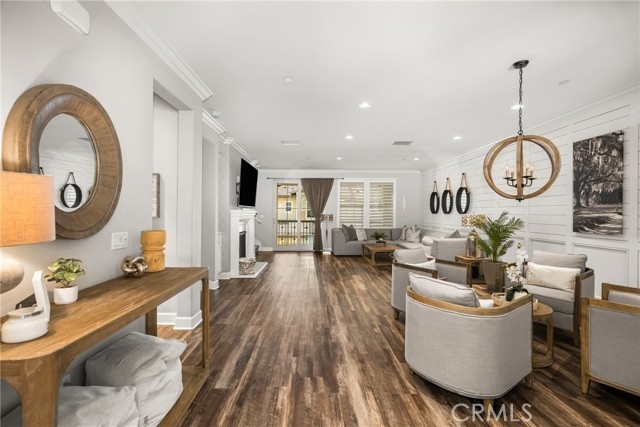 Welcome to your dream townhome in Yorba Linda! This stunning residence truly rivals any model home with designer finishes, custom craftsmanship and nearly $350,000 in upgrades. From the moment you enter, the high ceilings, wide staircases, and open floor plan create a grand yet inviting feel. Throughout the home, you’ll find engineered wood flooring that blends durability with warmth, perfectly complementing the custom paint palette, plantation shutters and designer lighting choices that have been selected with care. At the heart of the home is a chef’s kitchen featuring professional-grade appliances, quartz countertops, and an oversized island with a waterfall edge. The kitchen is open to a large dining room, enhanced with elegant wainscoting that adds both charm and character. For wine enthusiasts, a custom wine closet with backlighting and a glass door offers a touch of luxury and becomes an instant conversation piece. One of the home’s standout features is the seamless connection to its outdoor spaces. Off the dining room, sliding doors lead to one of the largest yards in the community—a rare find for townhome living. This private oasis backs up to a lush hillside, providing greenery and a sense of seclusion that enhances your everyday retreat. The yard has been thoughtfully designed with an intimate seating area, perfect for quiet evenings or gatherings with friends. A custom fireplace and a new patio cover make the space both inviting and functional year-round. Whether you’re hosting a summer barbecue or relaxing under the stars, this backyard delivers. The spacious living room is anchored by a custom shiplap wall with built-ins, a cozy fireplace, and access to a balcony with views. Upstairs, the primary suite impresses with mountain views, a walk-in closet, and a spa-like bath with dual vanities, soaking tub, and walk-in shower. Secondary bedrooms feature mirrored closets, with one offering sleek zebra wood built-ins. Car lovers will appreciate the oversized 4-car garage with separate A/C unit, epoxy floors, custom cabinetry, workbench, LED lighting, and vertical lift opener. The home also features smart technology, home audio, and security system, throughout. Set in a highly desirable community, residents enjoy resort-style amenities including a pool, spa, gym, playground, BBQs, and clubhouse. With its premium lot, extensive upgrades, and unmatched style, this 3-bedroom, 2.5-bath home is a true showstopper you won’t want to miss!