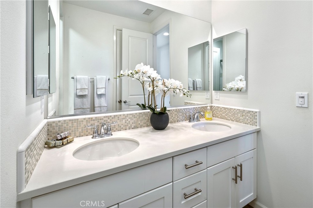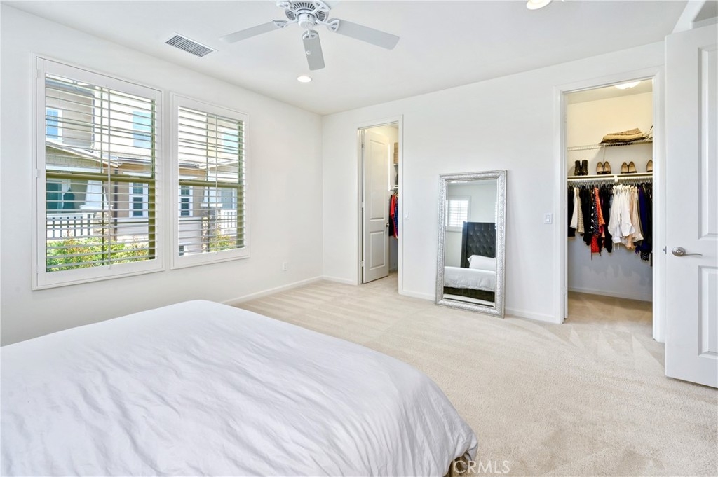 Luxury townhome in the Palisades community with lavish living. All the amenities of a resort style living. Corner lot with parking for your guests directly in front. Tile flooring throughout the main floor, with newly installed carpet on the stairs leading to the garage. Custom built in shutters on all the windows throughout the home. Enjoy home cooked meals and entertain guests in your gourmet kitchen featuring a spacious center island with granite counter tops and matching backsplash. Large pantry, 5 burner gas cooktop and stainless steel appliances. Just off the kitchen you can sit in your balcony for coffee in the mornings or enjoy a hot cup of tea at night. Kitchen’s open floor concept flows into family room. Gorgeous Restoration Hardware chandelier in the formal dinning area. Living room features a cozy gas fireplace that turns on with the switch of a button. Your master bedroom features a bright and airy feeling with ceiling fan and a his/her walk-in closet. The master bathroom includes his/her separate vanities, a separate tub and walk-in glass shower enclosure. All the bedrooms are generous in size and a laundry room with storage and utility sink conveniently upstairs. Attached 4 car tandem parking garage with recently installed & permitted 220V EV charging outlet, with custom-made built-in cabinets, a workspace, storage closet, epoxy flooring, and tankless water heater. This must-see home is considered a prime location lot due to its larger-than-most backyard. A backyard with stamped concrete perfect for entertaining. The Palisades residents enjoy living in a master planned golf community of Vista Del Verde located among the rolling hills with amenities such as pool, spa, bbq area, picnic tables, a recreation clubhouse with fitness room, yoga room, kitchen and multi-purpose room, as well as a play ground, and close to walking trails. Close to the new Downtown Yorba Linda Entertainment Center. Located in a top rated school district. (Within walking distance to the exclusive Black Gold Golf Course!) Welcome home!