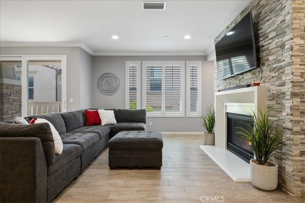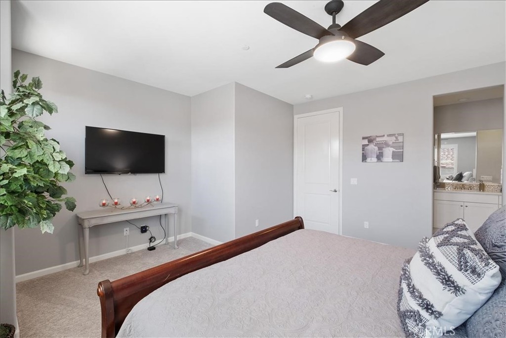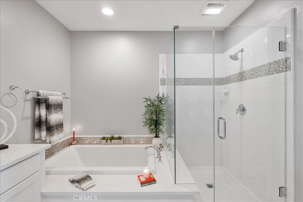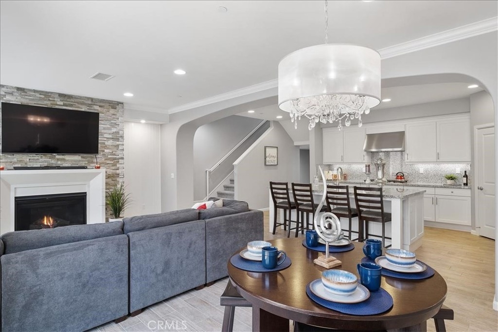 Welcome to this tranquil, beautiful and spacious Townhouse in the hills of Yorba Linda with its great community and outstanding schools. The entry has high ceilings which are carried throughout. The kitchen is a bright, well lit room that opens directly into a comfortable and relaxing family room with a custom built electric fireplace adorned in stone and decorative Wayne’s paneling. Enjoy tall ceilings, tile flooring, large windows with plantation shutters and sliding glass doors to your private patio. The kitchen has a rectangular center island with breakfast bar seating for four which makes serving up quick family meals a snap! The kitchen features beautifully finished cabinetry, large pots and pan draws, brand new dishwasher and five burner gas stove top, stainless steel appliances, granite countertops and back splash, and lots of cupboards including a walk in pantry. Conveniently off the other side of the kitchen is a dedicated dining room designed with an open floor plan, crown molding, chandelier lighting and beautiful tile flooring. If you are looking for two master bedrooms your search is over. The master suite that sits in the back portion of the Townhouse features a beautiful archway which gives way to the master bathroom with an oversized double sink vanity, deep sunken soaking tub, oversized glass enclosed shower with ledge, private water closet, and walk-in closet. Enjoy your side view which spans to Catalina Island on a clear day. The second master has its own private bathroom and walk in closet and is located on the front of the property. Laundry is made easy with your interior laundry room including sink and lots of closet space. The downstairs offers many possibilities with wood flooring, a family room and multipurpose room that is currently engineered as a gym and basketball entertaining game room. It features a bedroom and bathroom with a shower/tub combo and storage closet. The tall sliding glass doors open to your enclosed backyard. Throughout the home you will find recess lighting and ceiling fans. The two car garage with direct access to the home shows beautifully with its epoxy floor, tankless water heater and built in shelving. The community offers a pool, jacuzzi, gym, yoga room, community club house, barbecues and picnic area, walking paths, horse trails and local parks. Located close to shopping, movie theaters, restaurants and a hop skip and a jump to both the 91 and 57 freeways. Move in ready. Welcome Home!