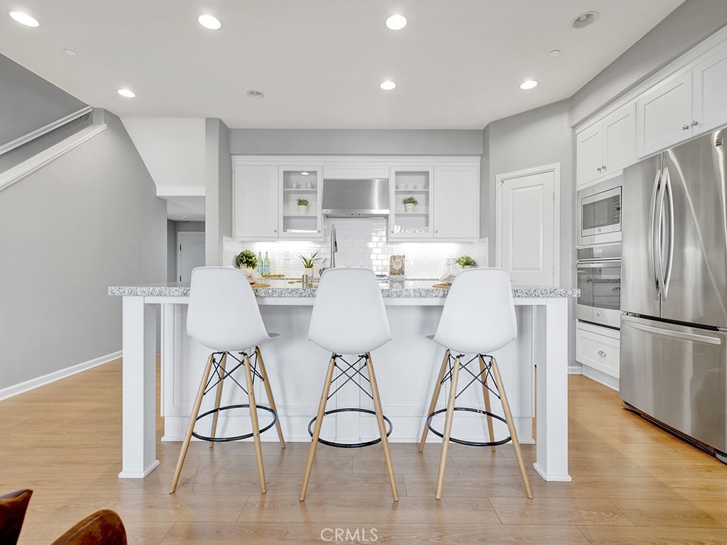Beautifully appointed home is located in the highly desired Palisades of Vista Del Verde (VDV)---within walking distance to the exclusive Black Gold Golf Course. Now is your chance to own this gorgeous home with custom flooring and brand new carpet, freshly landscaped back yard, upgraded kitchen with 5-burner GE cook top, granite countertops, exquisite laminate flooring, custom backsplashes, all stainless steel kitchen appliances, glass paneled kitchen cabinets, a private patio and balcony, indoor laundry room and tons of amazing HOA amenities. This floor plan boasts 3 bedrooms, 3.5 bathrooms and 2453 square feet of open living space. Feel welcomed home when entering the open, light and bright floor plan with the " Kitchen-Opening-to-Living-Room" concept, with a prodigious Granite topped huge island bringing the two together: The centerpiece for all entertainment and cooking adventures. Be pampered in this extra spacious kitchen with every conceivable amenities: oversized island, extra large Kenmore refrigerator and matching stainless steel GE dishwasher, stainless steel microwave, and 5-burner gas stovetop, even a nice size walk-in pantry. Inviting living room with custom built cabinets, recessed lighting, energy efficient windows, anchored by an elegant fireplace. Wonderful Formal Dining room with " Peek-a-boo" views of the City Lights! Master suite has it all with dual sinks, large soaking tub, separate glass shower and extra spacious walk-in closet. The lower level of this home features an equally elegant and spacious living area with a separate bedroom and bathroom. The downstairs family room is the perfect place for family movie nights or as an extra office area and opens to the ground level patio. All bedrooms are spacious, bright and airy. You will be delighted with the garage with tankless water heater, extra storage area over the garage and direct access to the home. Home has water filtration under sink in Kitchen and basement. Community is beautifully maintained with recently renovated sparling pool and spa, BBQ/picnic area, clubhouse, recreation area and playground, green belts and equestrian trails. This home is only minutes away from the top rated schools, restaurants, the exclusive Black Gold Golf Course, the new town center and Yorba Linda Library. Yorba Linda is rated one of the top safest cities in the state. A true must see!