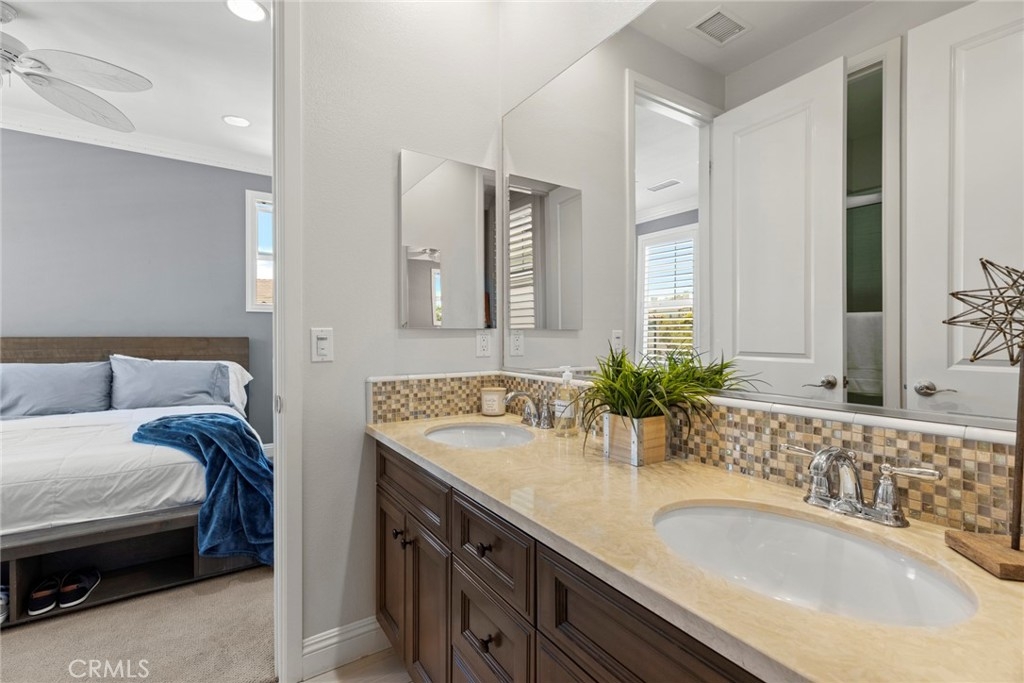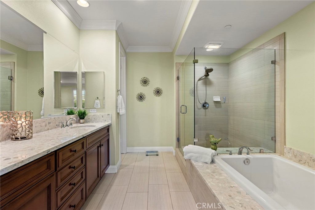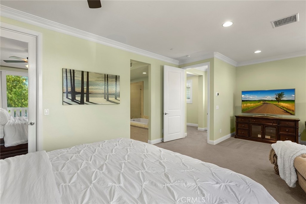 WELCOME TO BIRDIE DRIVE...Newer Luxury split-level townhome located in the most highly desirable community in VISTA DEL VERDE. The ONLY corner lot PREMIUM end unit with only ONE neighbor in the whole community. This beautiful Taylor Morrison home offers 4 Bedrooms, a bonus room that can be turned into a FIFTH bedroom, 3 FULL BATHS and a 1/2 bath for guests. This 2530 sq. ft. townhome also offers CROWN MOULDING and PLANTATION SHUTTERS throughout. The Master Suite Bedroom offers a retreat large enough for another sitting area, a organized upgraded master closet with cherry wood cabinets, a sunken bathtub separated from the large shower with upgraded tiles. 2nd bedroom offers an ensuite Jack and Jill bathroom with upgraded glass shower doors and a bonus room off to the side. Two more bedrooms are located upstairs that share a large bathroom with upgraded glass shower doors and VIEWS from bedroom windows that are breathtaking. The kitchen offers a large island big enough to put four barstools, upgraded granite counters and backsplash tiles that pop with the WHITE CABINETS. Also, kitchen sink is equipped with a built-in Reverse Osmosis Faucet water. Brand new GE Dishwasher was installed less than a year ago and a brand new CARRIER AC compressor was just installed in March 2021 along with a NEST thermostat. The oversized patio has pavers throughout with a nice lush slope with fruit trees, gardenias and roses. The newly painted 2 car garage is complete with epoxy flooring and a total of three professionally built in above storage racks for all your belongings. Garage is also equipped with a water softener system that maintains the whole house. It's very rare a Four bedroom plus option for fifth bedroom TOWNHOME is for sale in this community. WALKING DISTANCE TO BLACK GOLD GOLF COURSE AND NEAR YORBA LINDA TOWN CENTER. ACT FAST before its gone!