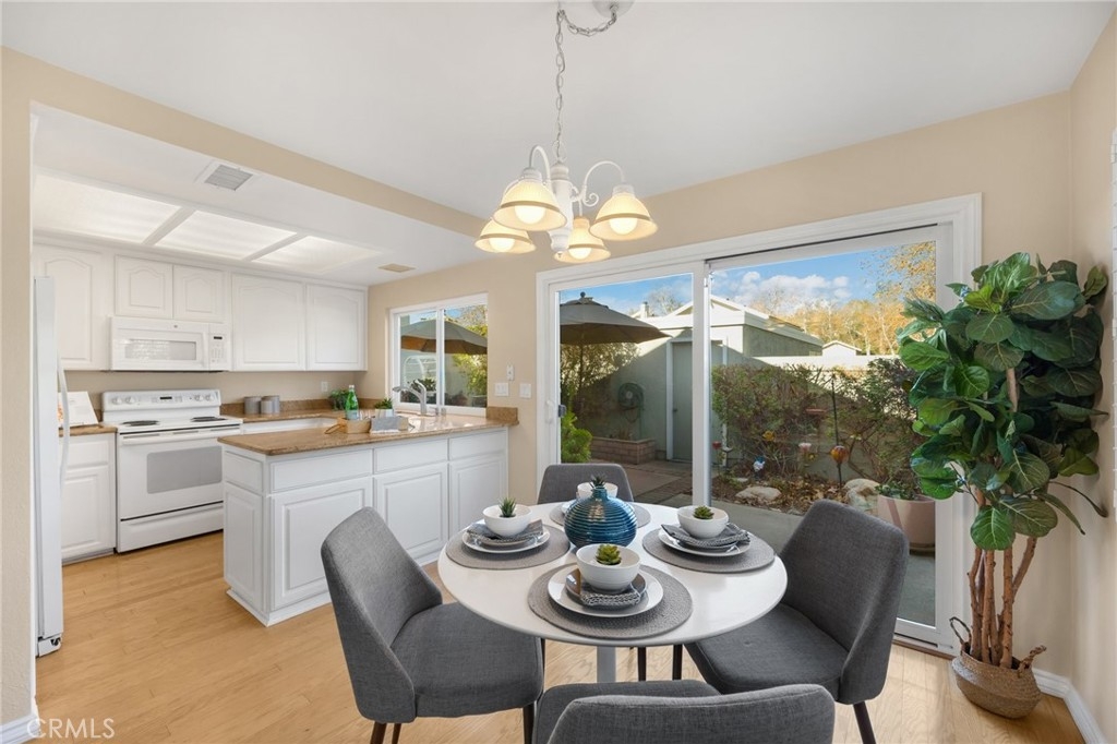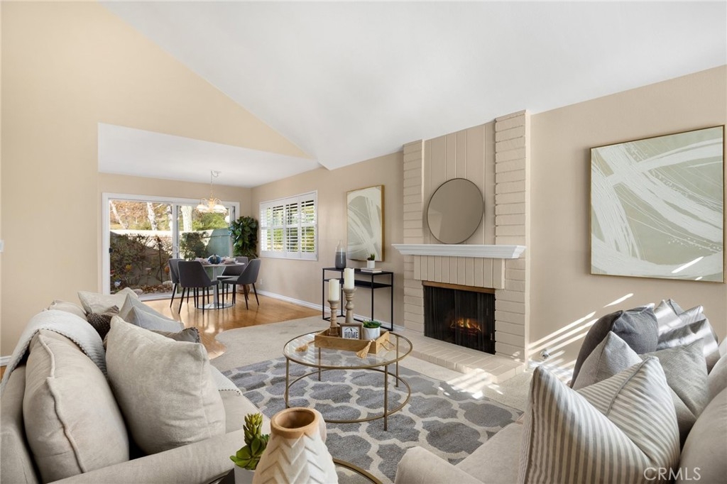 JUST LISTED!!!! In the highly desired Rancho Dominguez Community. This 3 bedroom 2 bathroom single story end unit is in a prime location, just steps away from the pool, playground, and tennis courts. As you enter you will be greeted by a bright, open, floor plan featuring a cozy fireplace, vaulted ceilings, fresh paint, custom shutters, and hardwood flooring. The spacious dining room with a breakfast bar flows seamlessly into the kitchen, which overlooks a large private patio; ideal for summer nights and entertaining. The owner's suite offers a sliding door to the patio and an updated ensuite bathroom. 2 additional bedrooms, a guest bathroom, and a 2 car garage complete this charming home. Don't miss out on this amazing opportunity!