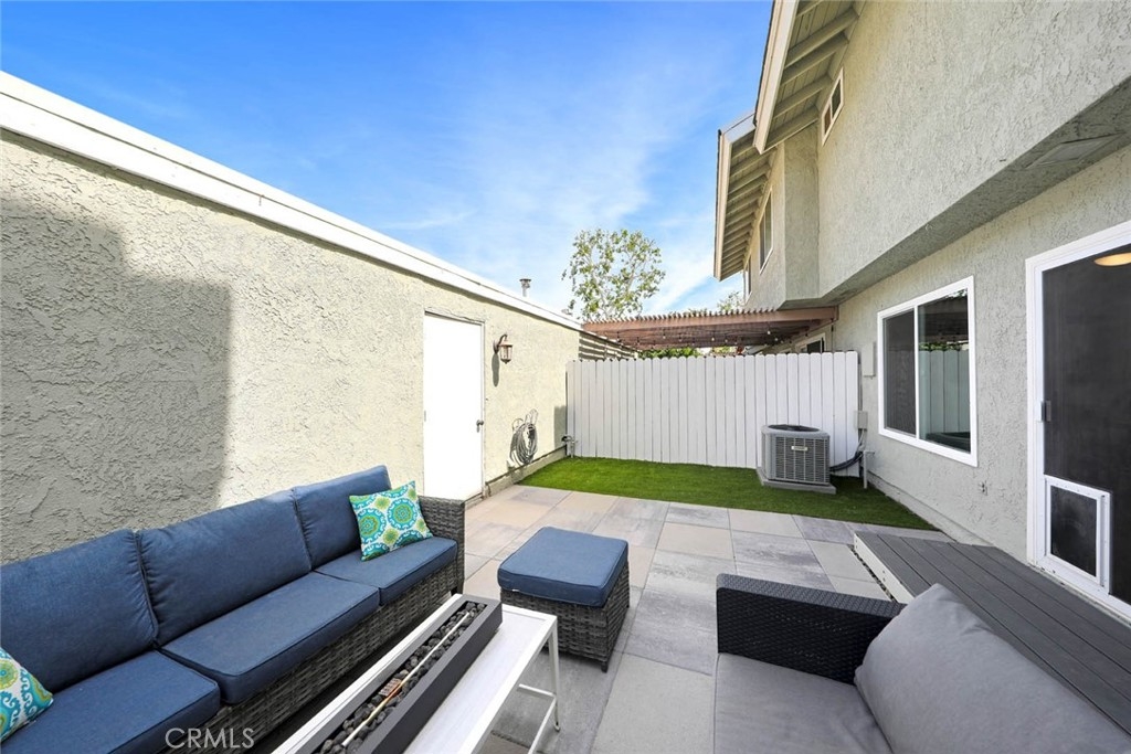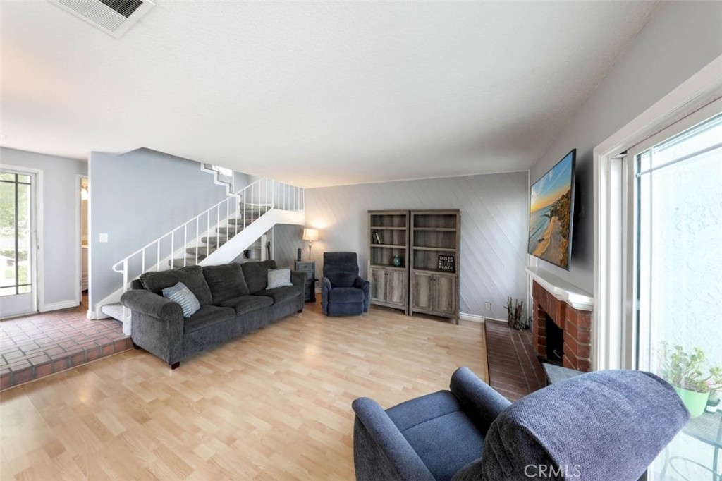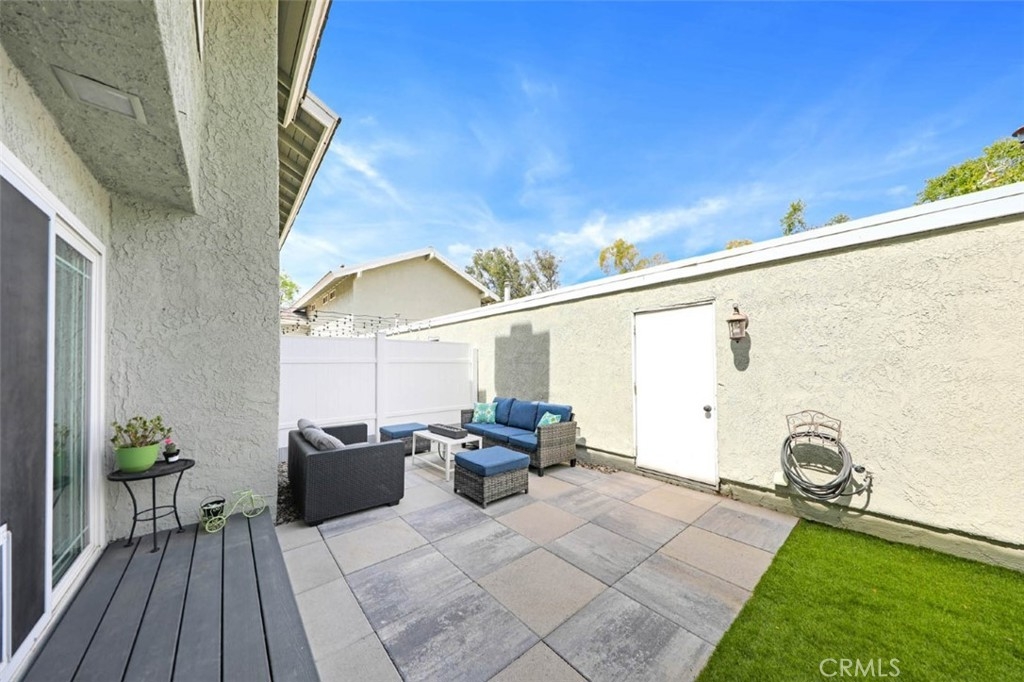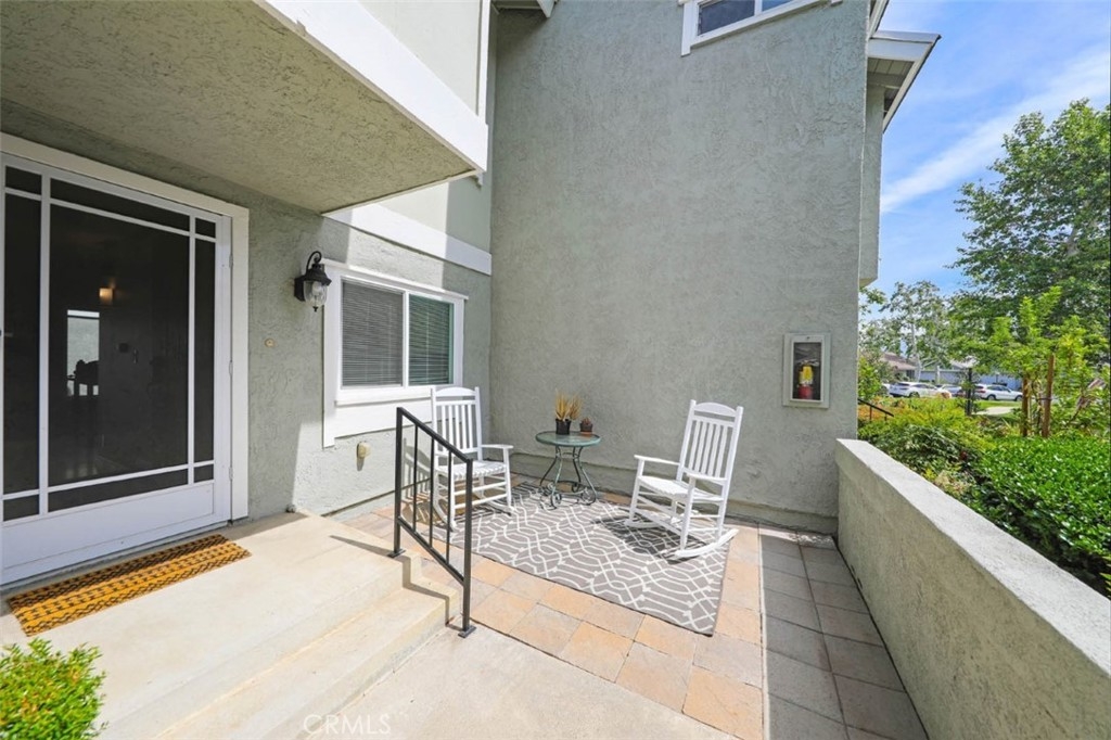 Location! Location! Rancho Dominguez Townhomes is one of best communities in North Orange County. Wide open, lush greenbelts, shady trees and walking trails throughout. This home has a lovely front patio entrance that overlooks beautiful grassy areas. You enter first floor into the living room, open adjoining dinning room and kitchen. Entire home has been recently painted. Downstairs is laminate flooring and upstairs has been recently carpeted. There are sliding glass doors that lead to outside backyard entertaining patio. The living room has a cozy brick fireplace and under the stairs there are custom bookshelves with lots of storage. The upgraded half bathroom is near the entrance. Kitchen has been recently remodeled with new white cabinets, granite counters, gray subway backsplash tile, newer stainless electric stove, microwave and dishwasher and has a view out to the front patio. Upgraded, dual pane windows were recently installed in the kitchen and dinning room windows and now entire home has newer dual pane windows throughout. Entertaining backyard patio has been recently updated with new fence and large concrete pavers for nice flat area to arrange your lounge sofas or patio table. The patio area leads to your adjoining 2 car garage with area for your washer/dryer and tons of storage cabinets. You have a private back entrance from your 2 car garage directly into your home. Upstairs, attractive primary bedroom has been upgraded with real wood flooring, two closets, dual sink area leading to tiled walk-in shower. There is a pull down attic storage area. Second bedroom is bright and light with full adjoining 3rd bathroom. Ceiling fans in both bedrooms and additional fan in stair area. HOA includes pool, kiddie pool, tennis courts, play ground. Award winning Placentia-Yorba Linda School District is nearby. Welcome to Yorba Linda!