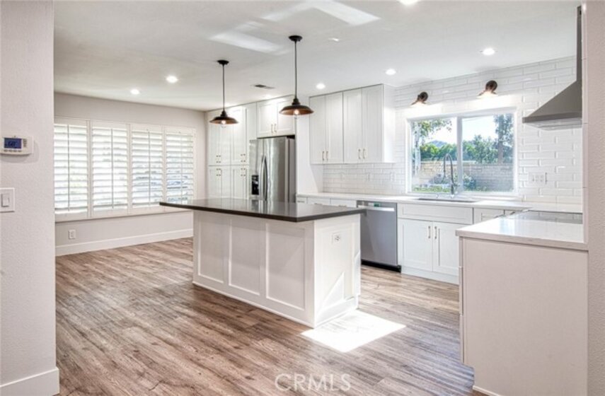 Light and Bright! Must see, turnkey, completely remodeled and highly desirable 3BR/2.5BA/1,530SF end unit in the Rancho Dominguez Townhome Development. Feels like a detached home with no livable common walls. 2 car attached garage with lots of room for storage. Open kitchen and breakfast nook with all new Stainless appliances flows into large living room with vaulted ceilings and an oversized brick fireplace that feels grand, yet cozy. Brand new vinyl flooring throughout and all new paint. Downstairs living area wraps around private, covered courtyard. All three bedrooms upstairs. This charming home is surrounded by endless greenbelts and mature trees and backs up to the Rancho Dominguez and Yorba Ranch Loop trails. HOA includes swimming pool, tennis courts and tot lot.