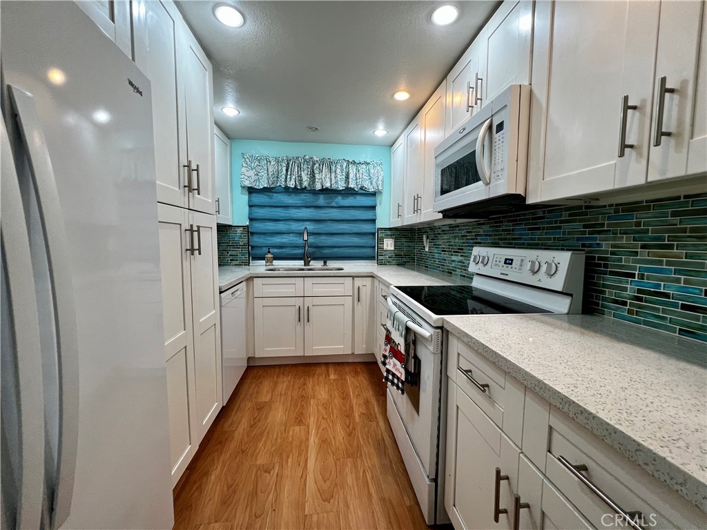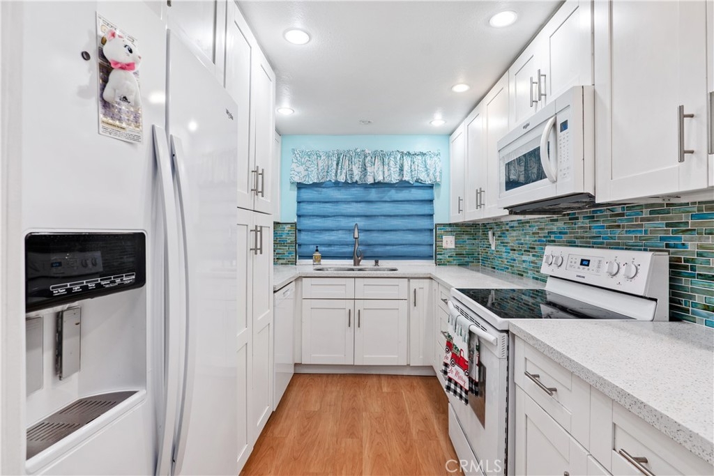 Most desired community of Yorba Linda in Rancho Dominguez, Travis Ranch with great schools!! Properties rarely goes on the market here, this is a wonderful 2 master suite condo with additional half bath downstairs upgraded kitchen and detached 2 car garage with private and enclosed courtyard. It is ready for the right buyer who is looking for a starter home or an investor looking for great investment. Light and bright kitchen with upgraded quarts counter tops and beautiful sea green tile backsplash with recess lighting, newer cabinets and farmhouse door leading to living room with cozy fireplace, dining area which is facing courtyard. Downstairs half bath was renovated few years back. Upstairs two master bedroom both with large closet spaces and one master bedroom with recently remodeled Jacuzzi tub shower with beautiful tiled walls all the way to the ceiling. Another bedroom with updated bathroom, granite counter vanity and white cabinets in the bathroom. Laminate floors downstairs and in one master suite and carpet flooring upstairs. Newer high performance HVAC system and A/C system, newer water heater, brand new dishwasher. Garage is equipped with your 220 Volts electric vehicle charger and laundry hook ups. Association amenities includes a pool, playground, tennis court in a park like setting, greenbelts and mature trees. Beautiful walking trails right behind the complex, HOA dues include trash services, roof and exterior maintenance. This condo is facing the tennis courts and park on the back so it is private. No Mello Roos and low taxes. This is a great price point to get in and own your home in a award winning schools of Travis Ranch. Priced to sell! This is a very quiet and peaceful community.