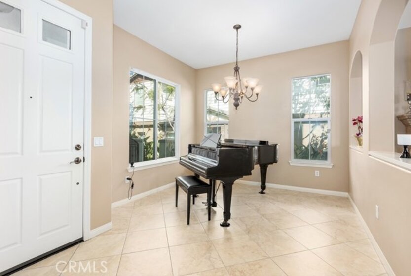 Meticulously maintained, single story with beautiful city lights views in the San Lorenzo in the Vista Del Verde Community of Yorba Linda. This beautiful Golf Course community home has a wonderful open floor plan with spacious living room, built ins and fireplace with beautiful stone mantel surround. Open kitchen has large island with breakfast bar, upgraded cabinets w/pull outs, under cabinet lighting, slab granite. Appliances include 5-burner Cooktop, refrigerator, oven & microwave. Separate dining room. Master suite with private bath with walk-in shower and soaking tub. Additional full bath along with guest bath. Bedrooms with newer carpet. Custom built-ins in spacious master closet. Freshly painted throughout. Separate laundry room. Larger patio & yard with views. The third bedroom has been opened up by the builder and ideal as a home office or additional den. Two car garage is complete with epoxy flooring with custom cabinets. San Lorenzo is a highly sought after community which offers a sparkling community pool and spa, BBQ facilities and club house. Within the Yorba Linda High School District and close to the new Yorba Linda Town Center and adjoining walking and horse trails.