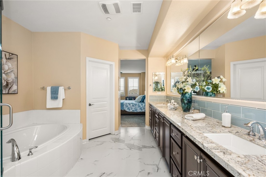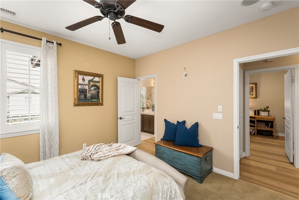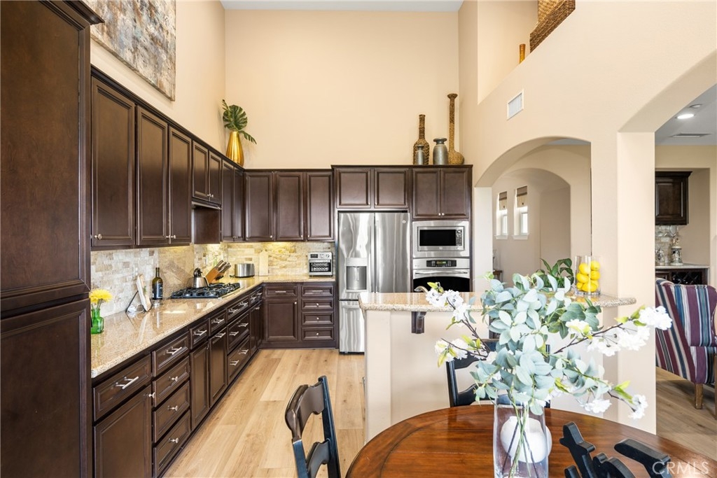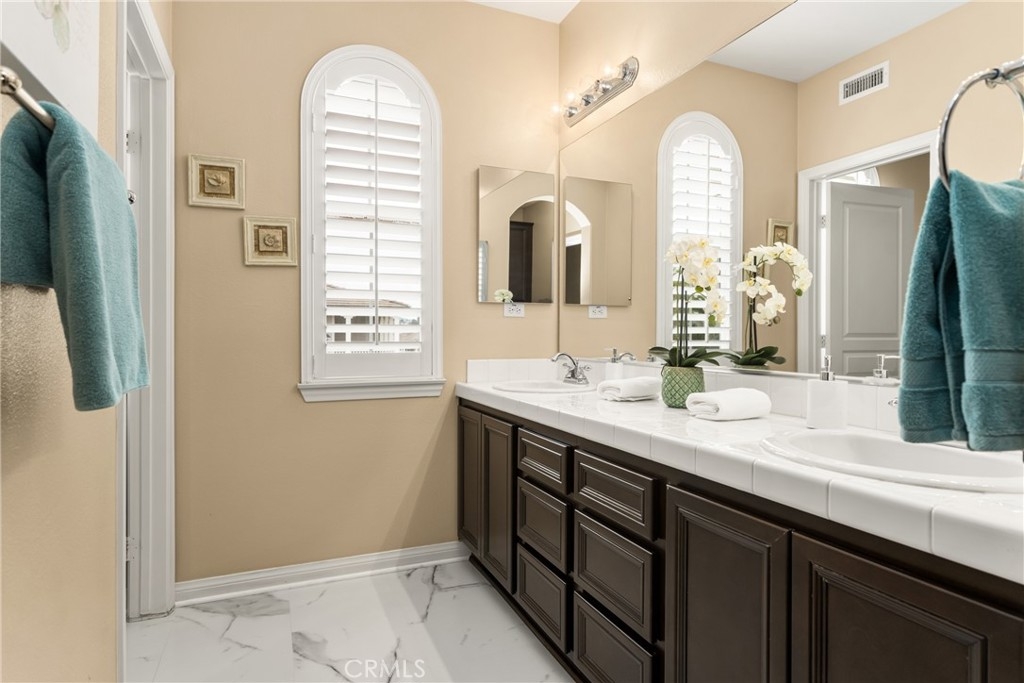 MOTIVATED SELLER - Largest and most popular floor plan with added full size ELEVATOR! This beautifully upgraded home in San Lorenzo at Vista Del Verde offers an exceptional living experience, spacious9 foot ceilings, seamlessly blending luxury, comfort, and breathtaking natural surroundings. With sweeping views of the Black Gold Golf Course, city lights, and stunning sunsets, this property provides a serene retreat. A private built-in elevator offers easy access to the living spaces, ensuring convenience and ease of movement. The living room is both elegant and inviting or can easily be used as a home office or play room. The dining room is ideal for hosting family dinners and special occasions. The spacious family room with elevated ceilings, stone fireplace and two custom built ins all open to the kitchen and breakfast room. Main living areas allows you to enjoy panoramic views of the course and stunning sunsets. The spacious master suite is thoughtfully placed on one side of the home for added privacy. It features a luxurious en-suite bathroom with high-end finishes, dual sinks, soaking tub, step in shower and a walk-in closet. Two additional bedrooms at the opposite end of the home share a Jack and Jill bathroom with tub/shower, dual sinks and added storage. A separate powder room is available for guests. A convenient laundry room with sink and built-in cabinetry, providing ample storage space. Recent upgrades include luxury vinyl wood flooring, high end carpet for the primary bedroom and new marble like floors in the baths and laundry. Outside you will find a beautiful and spacious back patio with the most incredible views. and a 2nd front balcony for added space. Within the award-winning Placentia Linda school system and walking distance to the prestigious Yorba Linda High School. Community facilities include pool, spa and a spacious clubhouse. Nearby is the new downtown Yorba Linda, the new library, as well as a variety of shops and restaurants, offering easy access to everything you need. This home is a must-see for those seeking a combination of luxury, privacy, and convenience in an idyllic location with stunning views. Whether you're looking to relax in the spacious living areas, enjoy the sunsets from the family room, or take advantage of the proximity to local amenities, this property offers everything you need for comfortable and sophisticated living.