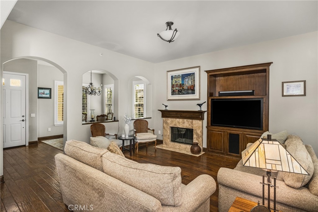 Imagine waking up to sweeping fairway views on the 15th tee of Black Gold Golf Course. Perfectly positioned on the fairway, this first floor, one level residence offers peaceful scenery, abundant natural light, and a lifestyle of comfort and relaxation. Welcome to 4045 Balmoral Drive in the San Lorenzo community of Yorba Linda, California. Step outside in the morning from your 3 bedroom (one currently an office) and 2.5 bathrooms, upgraded kitchen with an oversized island featuring granite countertops, ample storage, stainless steel appliances and recessed lighting. Open entertainer's floor plan with beautiful hardwood floors throughout, upgraded moldings, and LG 55” TV in custom cabinetry included. French doors open to your private patio perfectly manicured to enjoy a morning cup of coffee or an evening sunset view and a cocktail. This meticulously maintained, prime corner Model 1 is perfectly positioned in the community - bright, quiet and highly private. Immediately adjacent to the community amenities which include the swimming pool, jacuzzi, BBQ, club house and ample parking for guests. Offering 1,702 sq feet of open airy space, a large primary master suite with custom closet built-ins, large shower and oversized soaking tub. Additional features include inside laundry (LG Washer and Dryer included), custom plantation shutters throughout, water softener system, Nest thermostat, attached 2 car garage just off a larger 18’ driveway allowing for extra off street parking with custom storage that you can move right into. Why keep reading about it when you can come see this stunning fairway home for yourself?