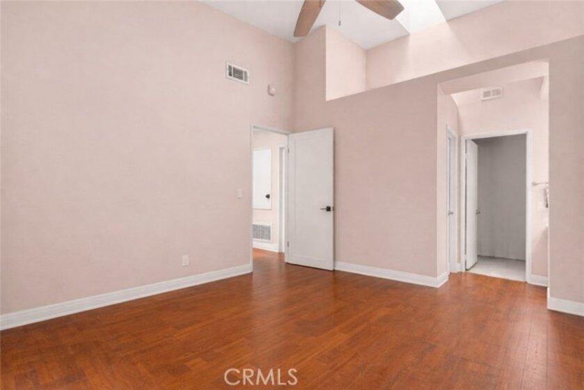 ***Highly motivated Seller*** Welcome to the coveted, The Hills Community. This spacious upstairs end-unit offers nearly 1,300 SQFT of comfortable living with 2 bedrooms and 2 baths. Beautiful engineered hardwood floors extend from the entry into the living and dining rooms as well as both bedrooms. It exhibits high ceilings and no one above. The large living room is filled with natural light and features a cozy gas fireplace and sliding glass doors that open to a private balcony. A versatile formal dining area serve as a home office or playroom. A well-appointed kitchen is equipped with stainless steel appliances, abundant cabinet & counter space, and a breakfast nook, with direct access to the balcony. Boasting high-sloped ceilings with a skylight, the primary suite is sure enlighten the senses. Its dressing area is adjacent to the walk-in closet, and a refreshed bathroom with a brand-new vanity, marble countertop, and modern faucet. The second bedroom is generously sized and also includes its own walk-in closet. A full-size shower completes the hallway guest bathroom. Additional highlights include an indoor laundry room conveniently located near the bedrooms (with extra storage space and a water heater) plus an exterior storage closet near the front entry. Vertical blinds can be found throughout and as well as ceiling fans in the bedrooms for added comfort and functionality. Residents of The Hills enjoy resort-style amenities including 2 pools, 3 spas, tennis courts, a fitness center, clubhouse, and 2 playgrounds. Conveniently located near SAVI Ranch shopping, dining, the 91 freeway, and the 241 toll road, and award winning schools.