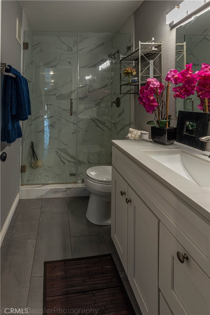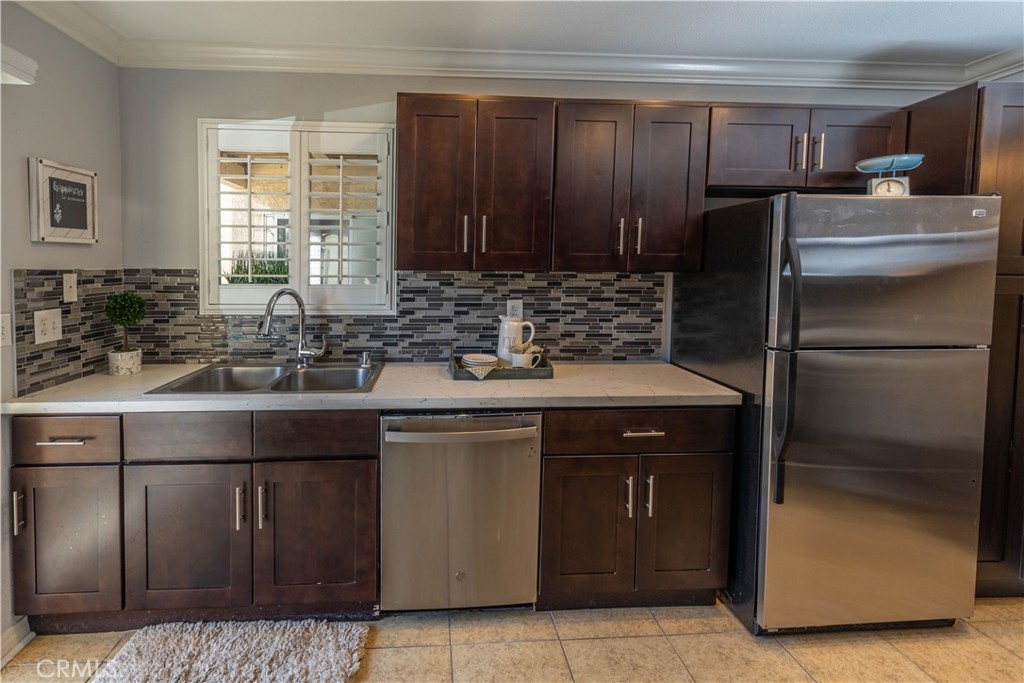 Serenity Now! Tucked away in the foothills of east Yorba Linda, this lovely lower level corner unit awaits! No stairs!! Plenty of light and space, this turnkey unit invites you into an open yet cozy vibe with fireplace, lovely engineered wood flooring, 6 inch baseboards, crown molding, formal dining area, upgraded custom kitchen with quartz counter tops, glass tile backsplash, espresso cabinetry and convenient breakfast nook. Sliding doors allow access to the peaceful patio from Kitchen, Master Suite and Living Room. Windows covered with custom plantation shutters provide lovely views of the exquisite eastern hillsides that surround this unit giving a secluded feeling and quiet enjoyment. The bedrooms are nicely sized with large walk-in closets and newer carpet. Updated gorgeous guest bath with floor to ceiling quarts shower and frameless glass enclosure, compliments the matching sink top vanity. Very convenient personal large laundry room is located on the patio right outside the master suite. In addition to ample storage inside, right by the font door is a private storage room with easy homeowner access! make sliding doors to access the peaceful private patio with full size personal laundry room. HOA includes water, trash (savings!!) and fabulous amenities; pool/spa, fitness center, clubhouse, tennis court, play area and more! Located in award wining Placentia-Yorba Linda School District. Close to shopping, dinning and easy access to freeways. Come See!!!