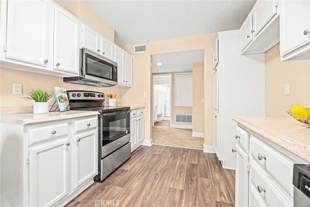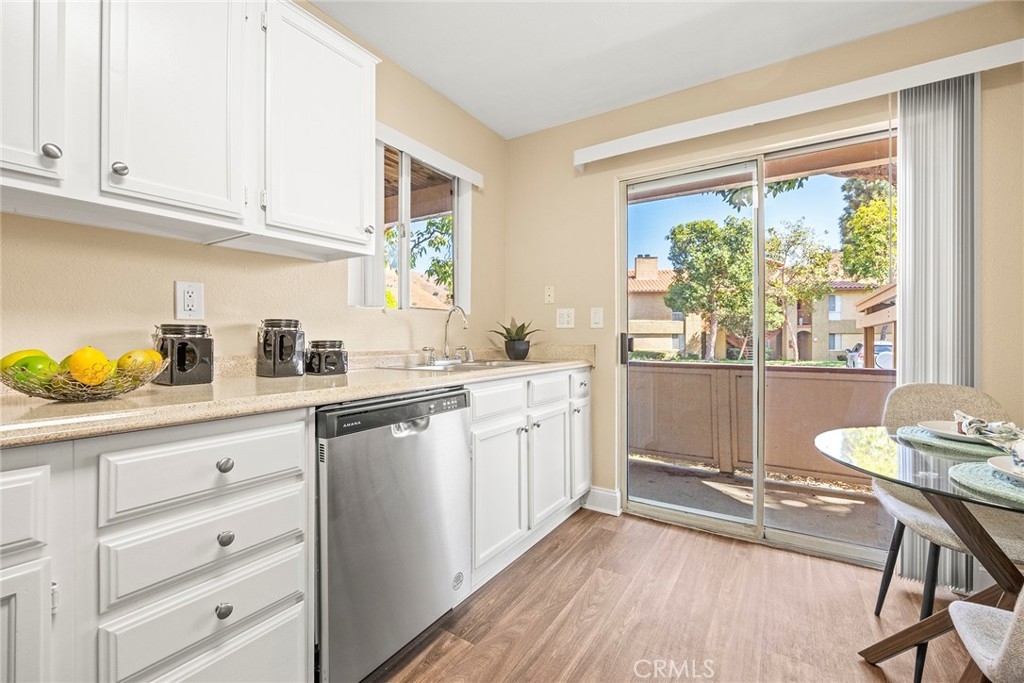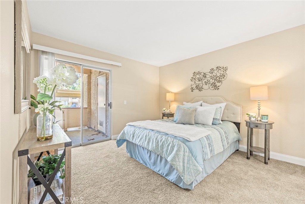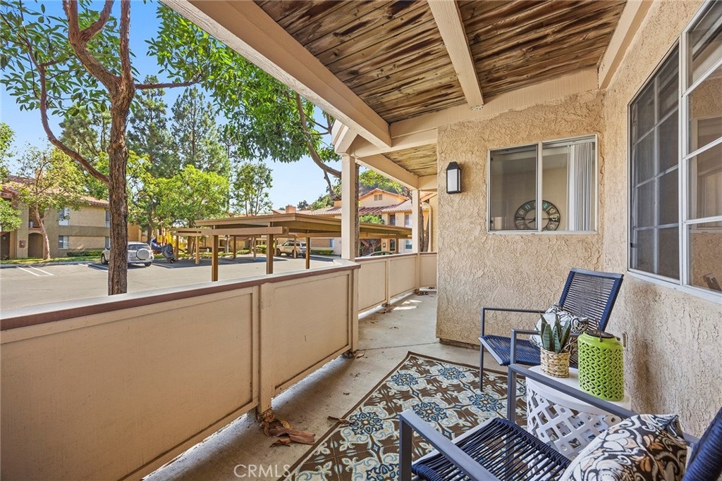 Here is your opportunity to get in on the ground floor for this special 2 bedroom and 2 bath condo in the Hills Condominium Community in Yorba Linda. Located at the back of the development gives you a better view of the hills and maybe some hiking and wildlife watching? This unit has received a lot of love with paint, carpet, and redone kitchen counters as well as a new stove and microwave and dishwasher! Just sit down in your breakfast nook and enjoy the views to the hills, maybe feed the birds, or read a book. Walk out the slider from the kitchen and relax on the balcony. That same balcony is also accessible from the living room slider or the primary bedroom slider. At the end of the balcony is the laundry room. One full bath is a part of the master suite with a walk-in closet. The other bath has a shower and both bathrooms have had the counters, tub and shower refurbished. So many good things about the condo as it also has a dining room and a good-sized living room with a fireplace. The HOA is generous as it provides great amenities with the pool and spa area, and the gym, in addition to the tennis court. Want to save money? Of course you do…the HOA pays for the water and the trash! Parking is accessible right outside your front door. Don’t miss this one!