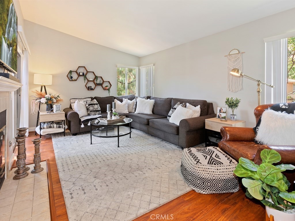 Nestled in the picturesque hills of Yorba Linda and privately located within the community, this highly desirable 2-bedroom, 2 bath home is perfect to call your 'New Home'! Offering over 1250 sq.ft., the second level location features single-level living, dramatic high ceilings, and an abundance of natural light. A welcoming ambiance of comfort and a cool color palette showcases an open floor plan that seamlessly connects the spacious living room with cozy fireplace, an ample dining area and continues throughout this delightful home; perfect for entertaining or WFH needs. The bright and airy kitchen with stainless steel appliances, quartz counter tops and newer white, shaker cabinets will truly inspire the ‘chef’ in you! This amazing home is completed with 2 generous size bedrooms each with large, walk in closets. The master en-suite and secondary bathroom are remodeled with newer Quartz-top vanities, fixtures, lighting, and designed tile flooring. Additional impressive appointments include: Laminate flooring through-out, ceiling skylight and radius window. The wrap around patio can be easily accessed from 3 glass sliding doors…great for BBQ get-togethers or simply enjoying the view of the hills, green belt, and tot lot. The full-size laundry & storage room is conveniently located off the patio. (additional storage at the front door) Association Amenities include; 2 pools, spas, tot lots, club house, fitness room & tennis courts. Trash and Water are also included. 2 Assigned, covered carports and plenty of guest parking. Located in the award-winning Placentia-YL School District and minutes from shopping, restaurants, movies, parks & freeways. Make This A Must See Home!