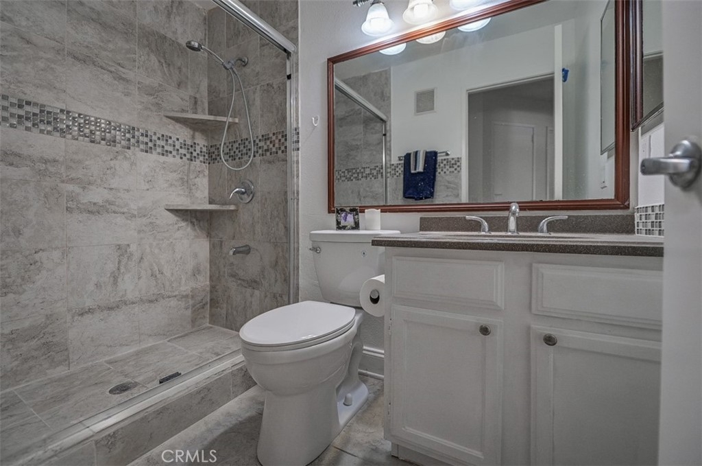 Charming, upper level, peaceful condo located in "The Hills" Community of Yorba Linda. Spacious home with a double-sided fireplace located between the Living Room, and Dining Room. This move--in ready home includes an abundant amount of natural lighting, that shines throughout the home, but especially in the hall and main bedroom. There are nice Vaulted ceiling in the bedrooms. There are two walk-in closets, and one closet with mirrored wardrobe closet doors. This condo has a large private patio, which provides extra space within this wrap around patio, perfect for relaxing and socializing. At the end of the patio, there is a dedicated laundry room where the washer and dryer are located, with some extra wall storage for your convenience. An Additional storage closet is directly outside to the left of the front door. Laminated wood flooring is throughout the home. There are two 3/4 bathrooms, with beautiful upgraded tiles in the showers. The condo has two assigned carport parking spaces. This condo nestles high in the hills within a peaceful setting, with good schools, close to the freeway, and shopping areas. This is a nice affordable home in Yorba Linda.
