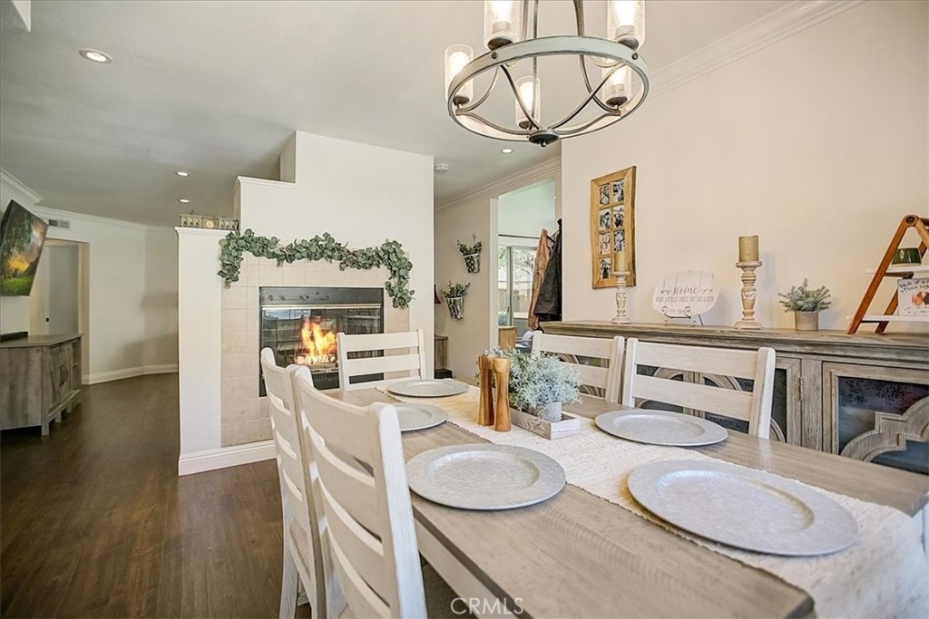 Welcome home to ?The Hills?, a highly sought-after first floor, three-bedroom, and two-bathroom condominium zoned in Yorba Linda. The front door greets you to a gorgeous remodeled family/living room and beautifully centered fireplace. The detailed aesthetics include but are not limited to updated crown molding, custom baseboards, freshly painted white walls, and New fixtures, including recessed lighting, continuous laminate flooring, six panel doors, water heater, and mirrors?these details and light-catching windows throughout complement the bright and airy floorplan. The kitchen features fresh white cabinets, quartz counters, and upgraded deep cast iron sink (included in the price), stainless steel dishwasher, a bar stool counter, and a breakfast nook area with glass sliding doors to the outdoor wrap-around patio. The main bedroom includes an en-suite bathroom with vanity, a roomy walk-in closet, and a glass slider to the outside deck with a separate laundry room. The generously sized secondary bedrooms provide ample closet space and are conveniently near their shared full bathroom. This unit includes two carports and the community offers ample of guest parking spaces. Homeowners in this quiet neighborhood enjoy amenities including two swimming pools, spas, tennis courts, a tot-lot, playgrounds, and a clubhouse with a fitness center, pool table, and dual-level lounges. With breathtaking mountain views, walking distance to Box Canyon Park, and proximity to award-winning schools, shopping, restaurants, parks, recreation, cultural/historical attractions, and entertainment venues, this community is ideal for full and vibrant living.