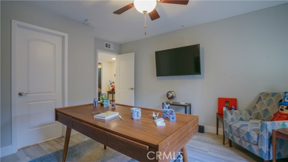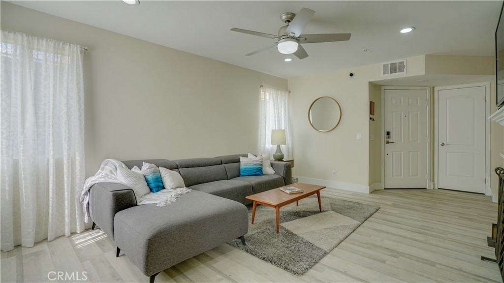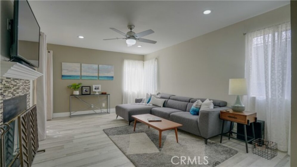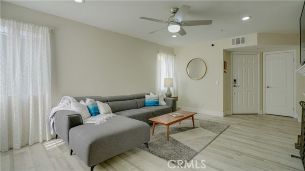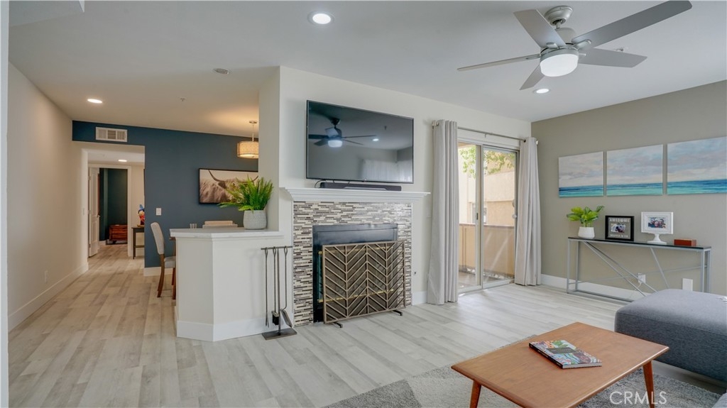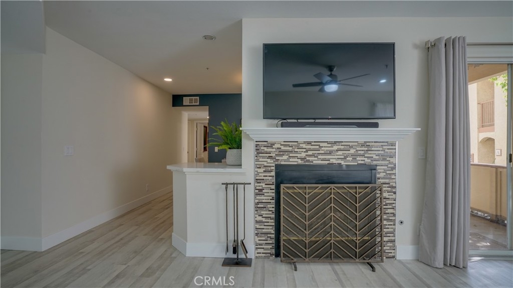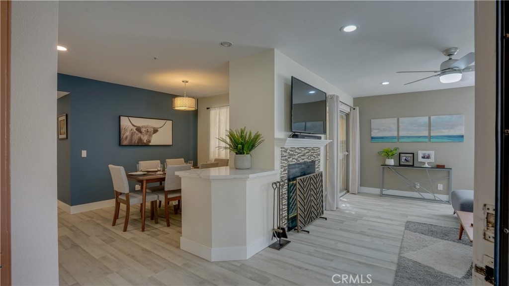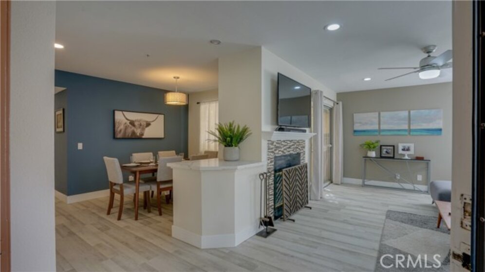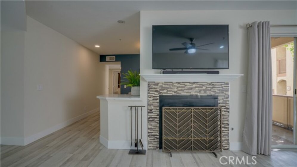 The condo of the future is waiting for you in The Hills community of Yorba Linda. Walking in, you'll be greeted by a modern living room with gray flooring and Apple Homekit compatible recessed lighting that changes temperature and a smart ceiling fan. You'll enjoy the brisk winter nights in front of fireplace. The spacious dinning area, features a custom-built drinks fridge as well as a smart light fixture. A newly remodeled kitchen waits for you, featuring new white cabinets with programable undercabinet lighting and new quartz countertops. Even the kitchen faucet is Alexa/Apple Homekit ready! The 2 spacious bedrooms with smart ceiling fans and smart light-blocking shades means you can turn on and off your lights and open and close your shades straight from your phone! You'll enjoy the warm days in your wrap around patio, with smart string lights already installed for you, that stretches from the Living room, past the kitchen, to the master bedroom, giving you 3 sliding doors from which to access it. This corner condo is just steps away from the Club House, HOA gym, pool, hot tub, and tennis courts. You will fall in love as soon as you walk in!