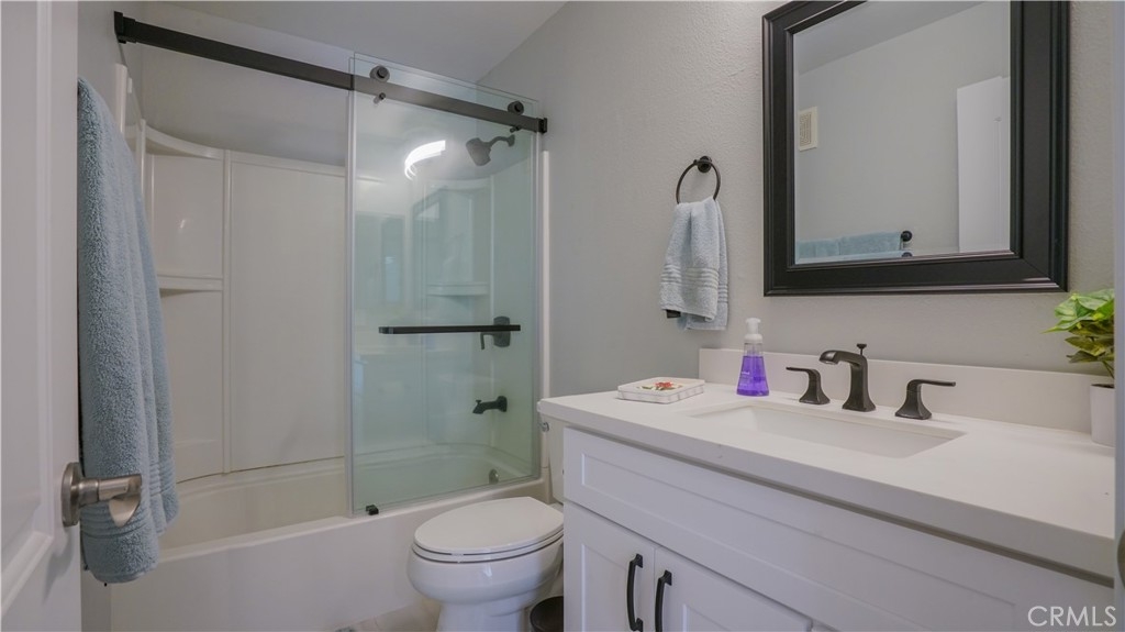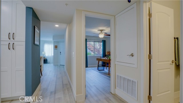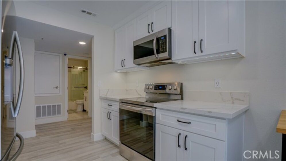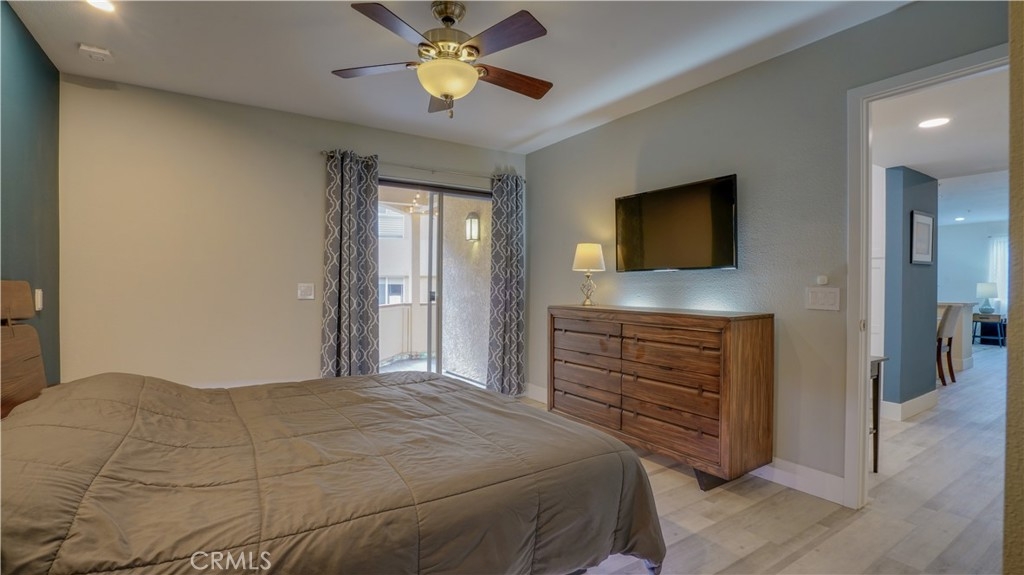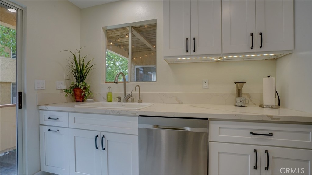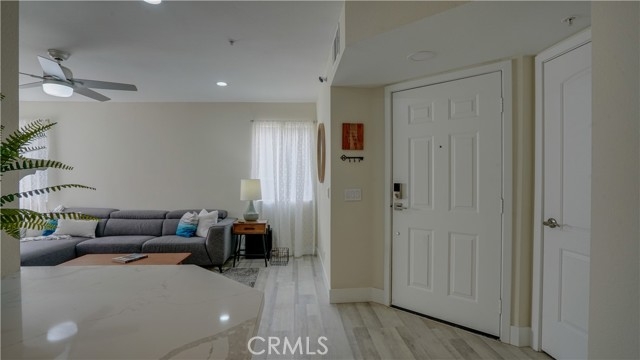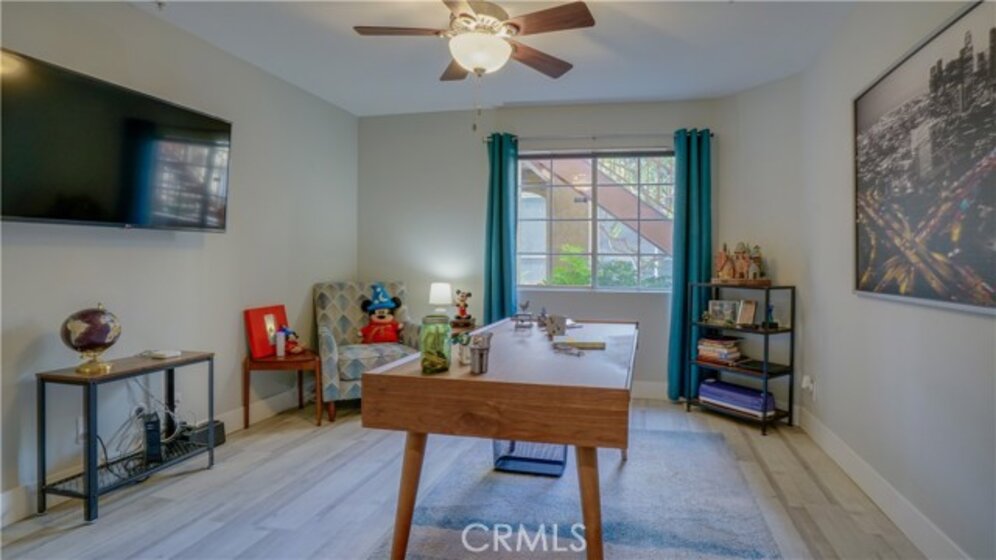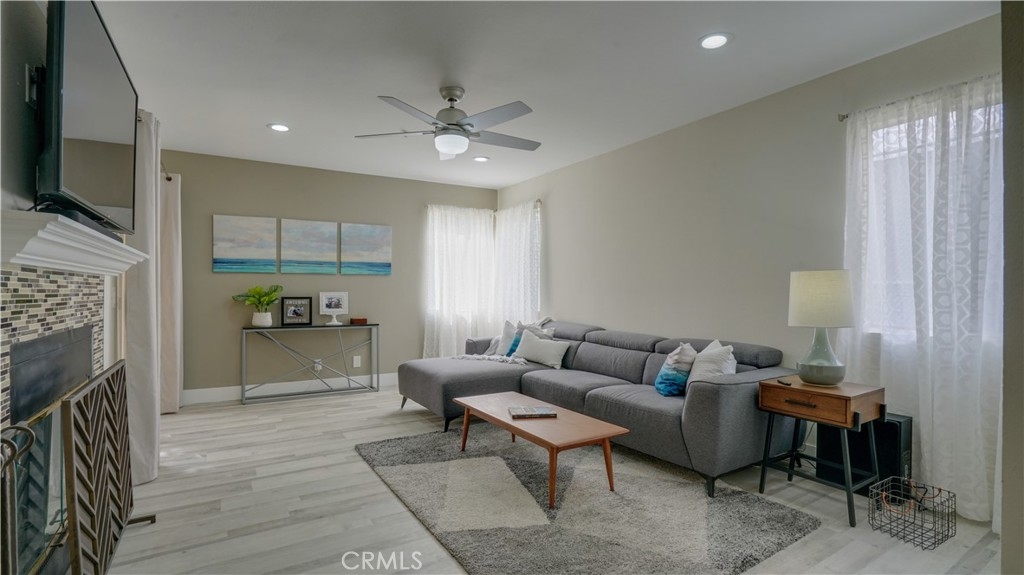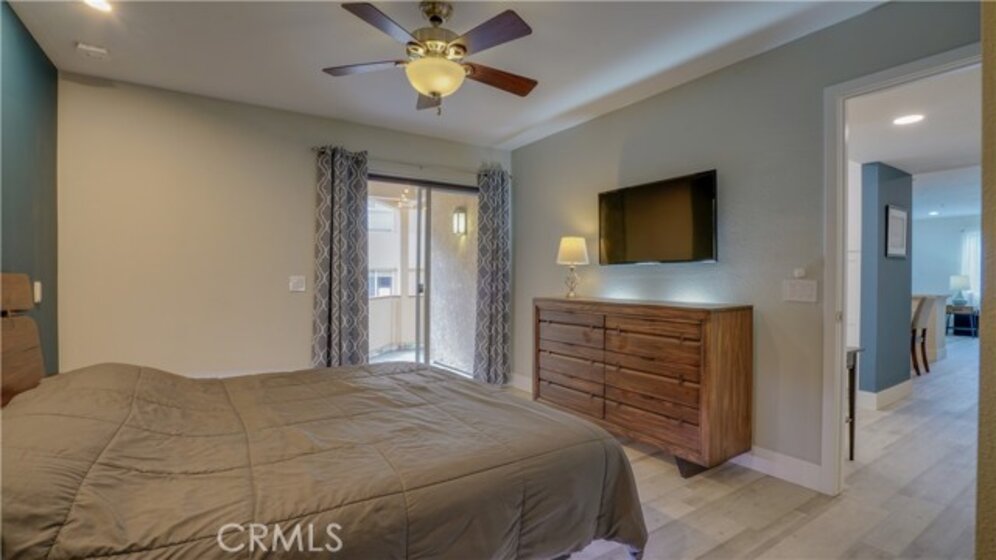 The condo of the future is waiting for you in The Hills community of Yorba Linda. Walking in, you'll be greeted by a modern living room with gray flooring and Apple Homekit compatible recessed lighting that changes temperature and a smart ceiling fan. You'll enjoy the brisk winter nights in front of fireplace. The spacious dinning area, features a custom-built drinks fridge as well as a smart light fixture. A newly remodeled kitchen waits for you, featuring new white cabinets with programable undercabinet lighting and new quartz countertops. Even the kitchen faucet is Alexa/Apple Homekit ready! The 2 spacious bedrooms with smart ceiling fans and smart light-blocking shades means you can turn on and off your lights and open and close your shades straight from your phone! You'll enjoy the warm days in your wrap around patio, with smart string lights already installed for you, that stretches from the Living room, past the kitchen, to the master bedroom, giving you 3 sliding doors from which to access it. This corner condo is just steps away from the Club House, HOA gym, pool, hot tub, and tennis courts. You will fall in love as soon as you walk in!