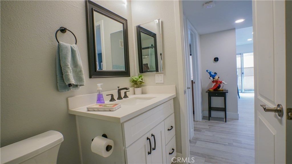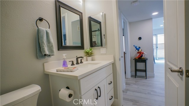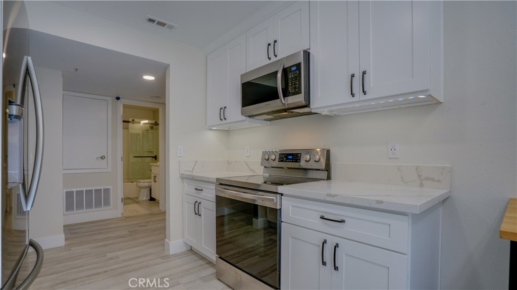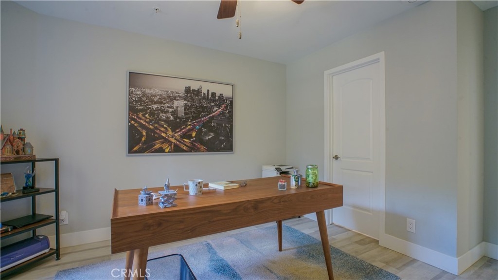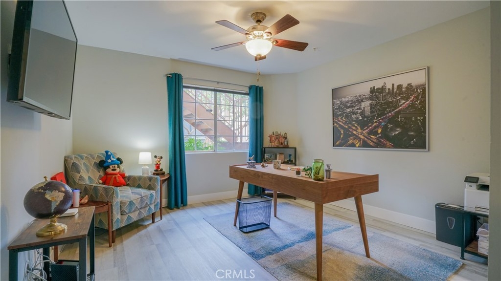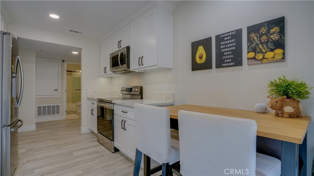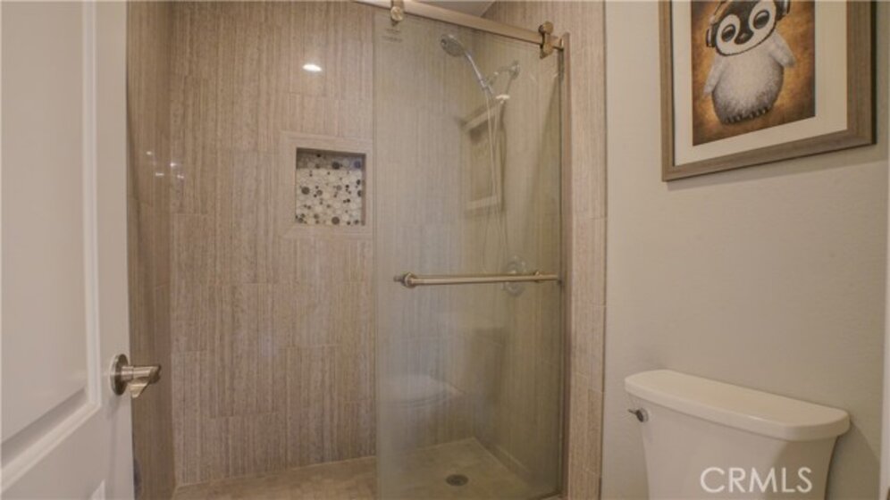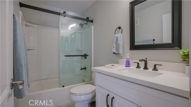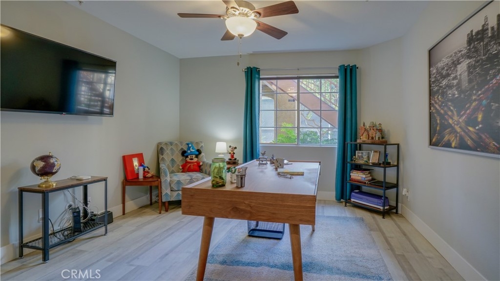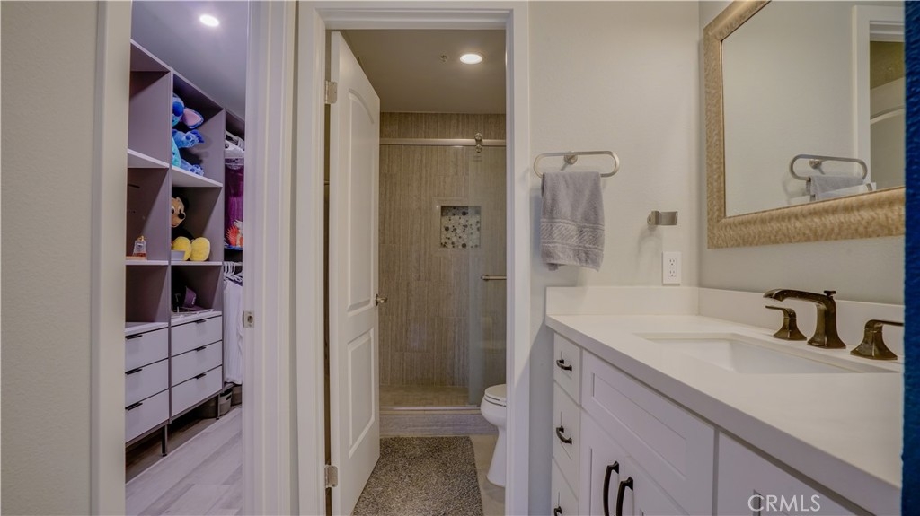 The condo of the future is waiting for you in The Hills community of Yorba Linda. Walking in, you'll be greeted by a modern living room with gray flooring and Apple Homekit compatible recessed lighting that changes temperature and a smart ceiling fan. You'll enjoy the brisk winter nights in front of fireplace. The spacious dinning area, features a custom-built drinks fridge as well as a smart light fixture. A newly remodeled kitchen waits for you, featuring new white cabinets with programable undercabinet lighting and new quartz countertops. Even the kitchen faucet is Alexa/Apple Homekit ready! The 2 spacious bedrooms with smart ceiling fans and smart light-blocking shades means you can turn on and off your lights and open and close your shades straight from your phone! You'll enjoy the warm days in your wrap around patio, with smart string lights already installed for you, that stretches from the Living room, past the kitchen, to the master bedroom, giving you 3 sliding doors from which to access it. This corner condo is just steps away from the Club House, HOA gym, pool, hot tub, and tennis courts. You will fall in love as soon as you walk in!