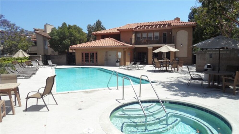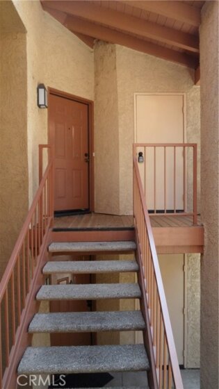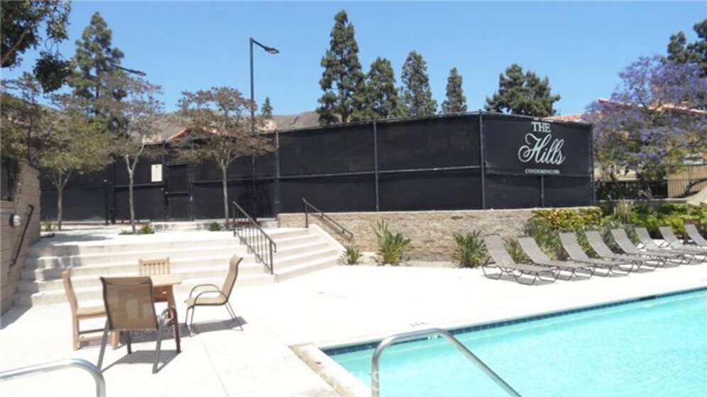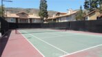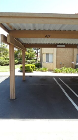 2 Bedroom 2 Bathroom, end unit condo; all upstairs; central A/C; fireplace in living room with slider door to large balcony with great views of tennis courts and hills; formal dinning room; carpet in bedrooms; laminate wood floor throughout; kitchen with electric cooking; built-in microwave oven; dishwasher; recessed lighting; small eating area; balcony overlooks tennis courts; separate/private laundry room on balcony conveniently located just off master bedroom) for full size washer & dryer hookups (can be gas or electric); hall bathroom with shower stall; master bedroom with walk-in closet and private bathroom with large shower/ tub combo; second bedroom with walk-in closet. Parking includes one assigned covered carport #479 and one assigned parking space #636. Amenities include association pool, spa, club house, gym, & tennis court. Water & trash is included in HOA dues, great for that first time buyer or someone with a fixed income.