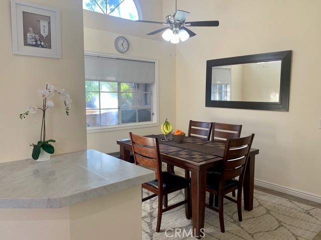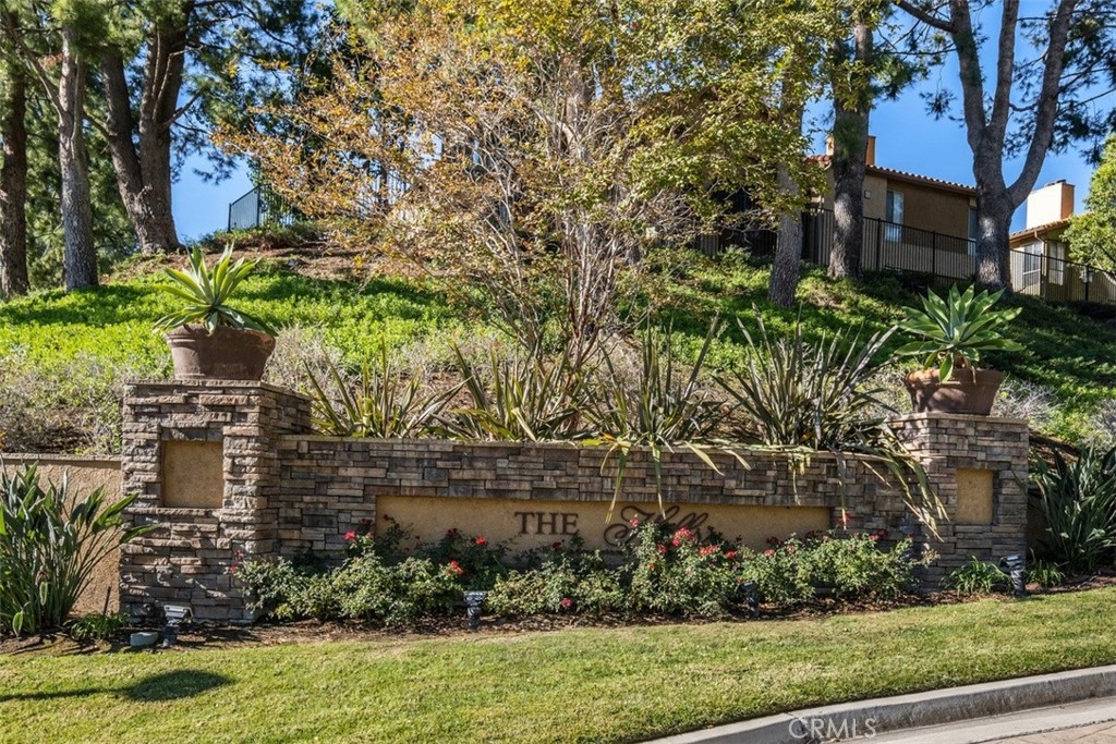 Fantastic Upper Light and Bright End Unit located in "The Hills" Community of Yorba Linda. Condo Features Vaulted Ceilings, 2 Skylights and Plenty of Windows to allow in the light. Upgraded Kitchen and Vinyl wood look flooring. Kitchen is designed with the chef in mind, added counter space doubles as an excellent additional prep station or wonderful bar area for a quick meal. Generous size master bedroom and second bedroom can fit king size beds. Great fireplace with mantel. Quartz countertops in kitchen, extra built in cabinet/storage in dining room. Home is at one of the higher points in the community and walking distance to the clubhouse, making this a great place to call home.