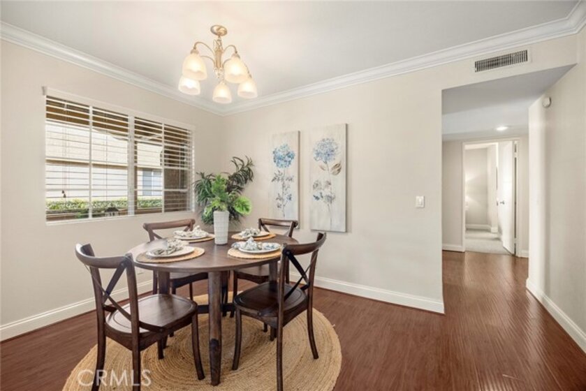 Nestled within the desirable Hills Community in Yorba Linda, this beautifully updated lower-level condominium offers the perfect blend of comfort, convenience, and relaxed Southern California living. Ideally positioned with easy ground-floor access and proximity to parking, the home provides both practicality and privacy within a peaceful, tree-lined setting surrounded by rolling hills. Inside, the thoughtfully designed two-bedroom, two-bathroom floor plan creates a welcoming and functional living space. The spacious living room serves as the heart of the home, highlighted by a cozy fireplace and a sliding glass door that fills the room with natural light while opening to a private outdoor patio—an inviting spot for morning coffee, outdoor dining, or simply enjoying the tranquil surroundings. The home features two dining areas that offer flexibility for everyday living and entertaining. A traditional dining space sits adjacent to the living room, while a charming breakfast nook off the kitchen provides a casual place for daily meals. The kitchen is well-appointed with granite countertops and updated lighting, creating a clean and modern feel. An additional sliding door from the kitchen opens to the side patio, enhancing the indoor-outdoor lifestyle and providing convenient outdoor access. The spacious primary bedroom suite includes its own sliding door leading directly to the patio, allowing fresh air and natural light to flow into the room. The second bedroom is comfortably sized and located near the second bathroom, making it ideal for guests, family members, or a home office. Both bathrooms feature updated lighting for a fresh, polished look. Additional conveniences include a covered laundry closet with washer and dryer located just outside the primary bedroom patio door, along with a private storage area near the unit’s entrance. A newer furnace and air conditioning system provide added comfort and energy efficiency year-round. Residents of The Hills Community enjoy resort-style amenities including a sparkling pool, relaxing spa, and a community fitness center. Surrounded by beautifully landscaped grounds and scenic hillside views, this home offers a peaceful retreat while remaining close to shopping, dining, and everyday conveniences. With its updated interior, functional layout, desirable ground-level location, and access to exceptional community amenities, this Yorba Linda home offers a wonderful opportunity for comfortable, low-maintenance living.
