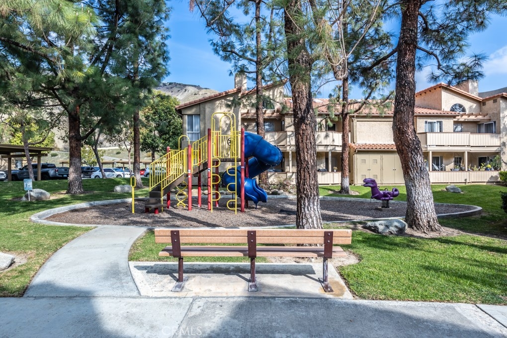 Welcome to the beautiful community of The Hills in Yorba Linda. This 2 bedroom, 2-bathroom single level condominium (no stairs ) is located in one of the best spots in a quiet corner of the community, with a private balcony. This condo features a cozy fireplace in the living room with a sliding glass door leading to the large wrap-around balcony. The kitchen has granite countertops ,recessed lighting .The master bedroom with ensuite bathroom, has a walk-in closet and an access to the balcony. There is also a large secondary bedroom with a walk-in closet, and a full bathroom just outside the door. Other features and upgrades include a full-size laundry room off the balcony with a washer & dryer, extra storage next to the front door , newer tile flooring ,New AC and heating unit. This community offers multiple pools, spa, greenbelts, views, playgrounds, gym, clubhouse, tennis court, two assigned covered carports (190,191) close to the unit, visitor parking and so much more. Minutes from award-winning schools, entertainment, restaurants, shopping, parks, and hiking trails. HOA covers water, trash as well. This home wont last..